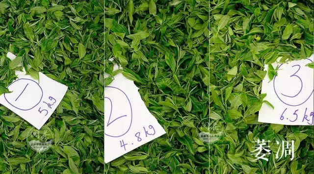 這株茶樹(shù)葉形細(xì)長(zhǎng),向陽(yáng)的地方葉色偏黃,而樹(shù)蔭里的葉色偏綠,以偏黃居多。通常而言,偏黃這類型葉子的滋味比較濃。這一株樹(shù)僅有4.8公斤鮮葉。