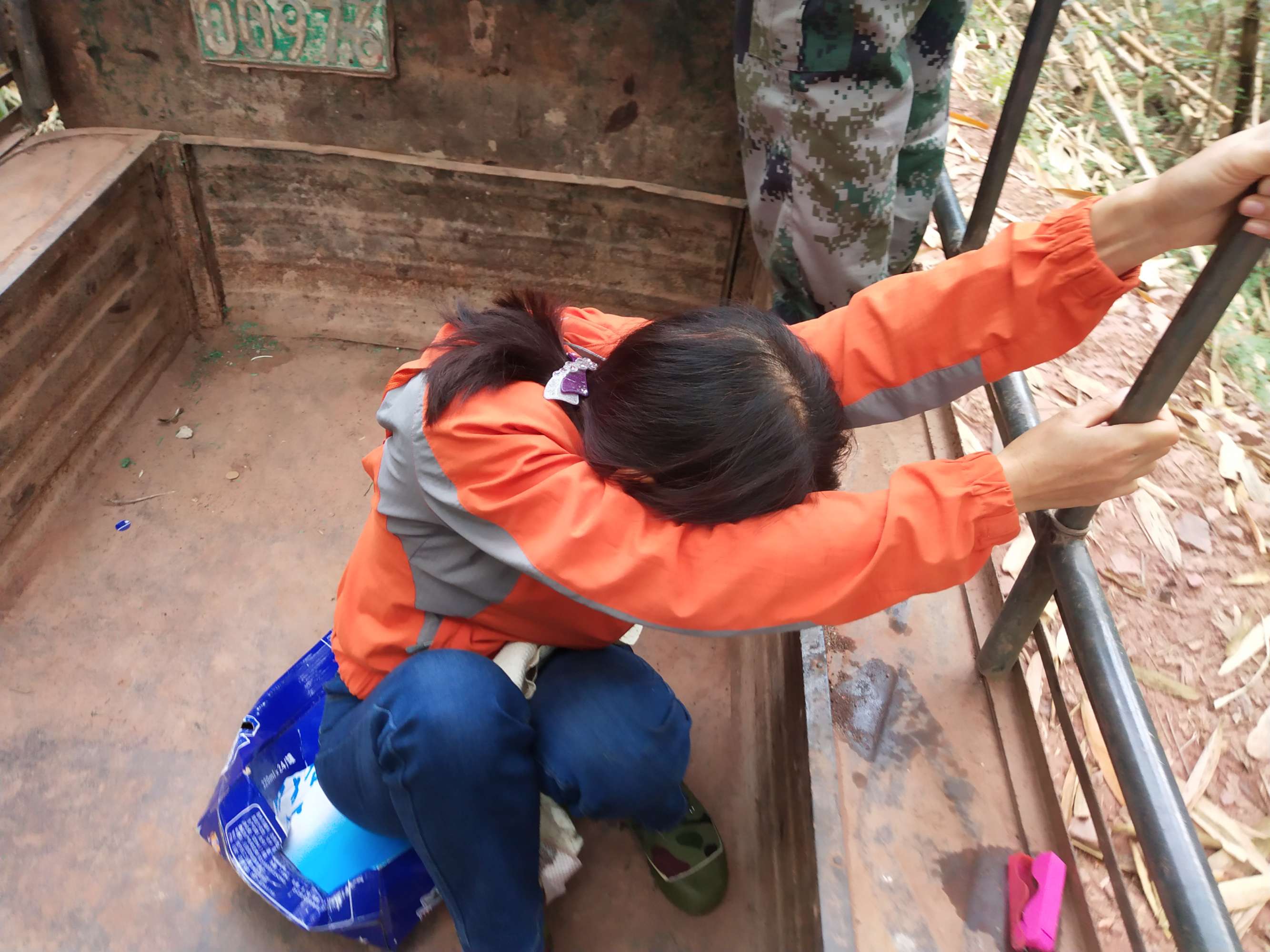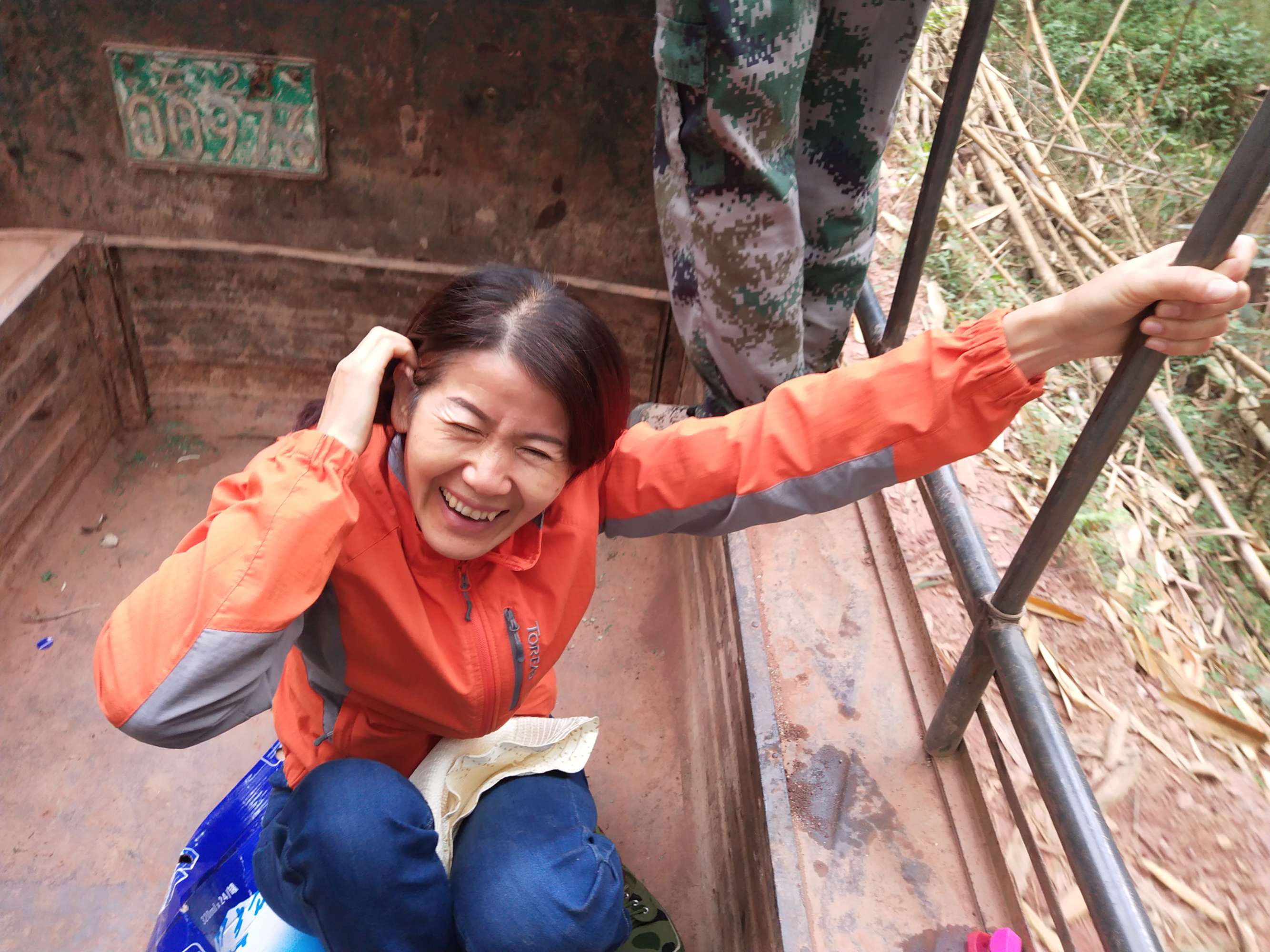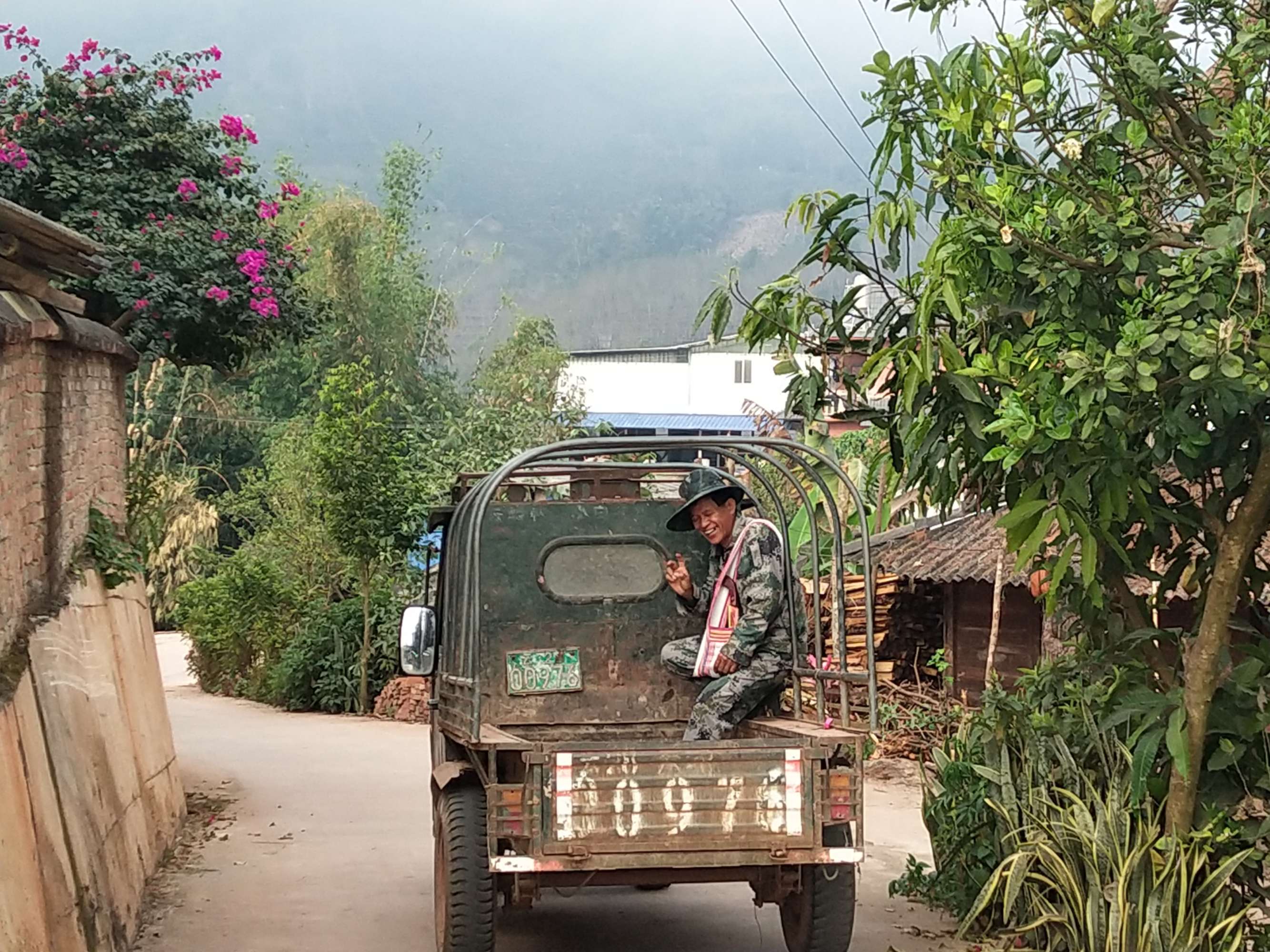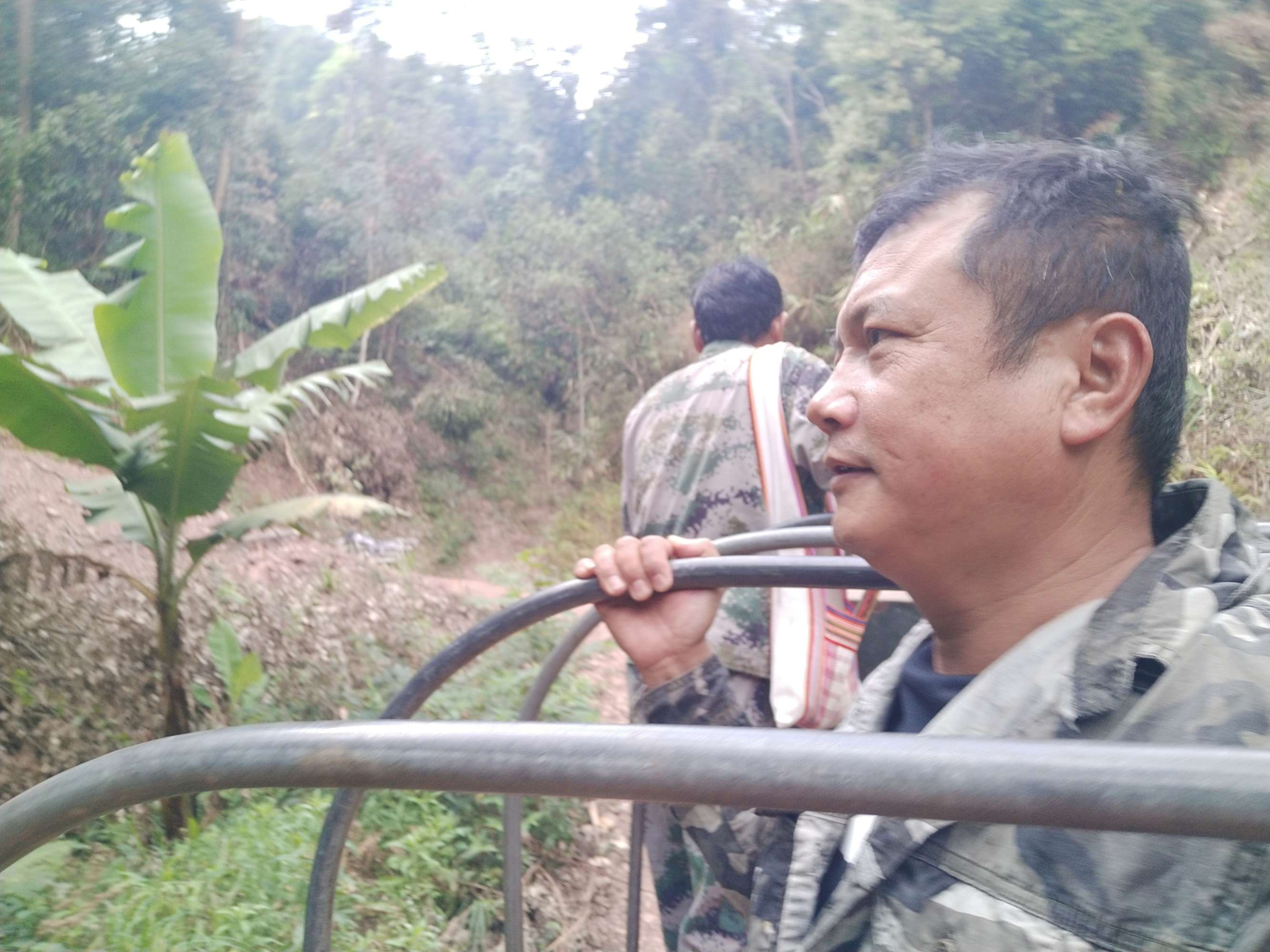 由于這條上山的路又徒又遠(yuǎn),車子只能開到半路。村里的者澤開著拖拉機(jī)帶我們上山,坐在車上實(shí)在是顛簸得要命,真叫是又驚險(xiǎn)又刺激。