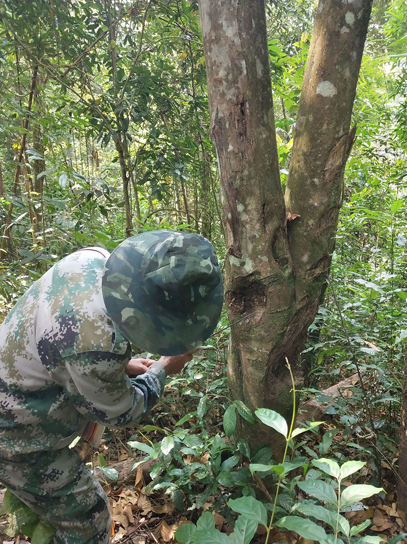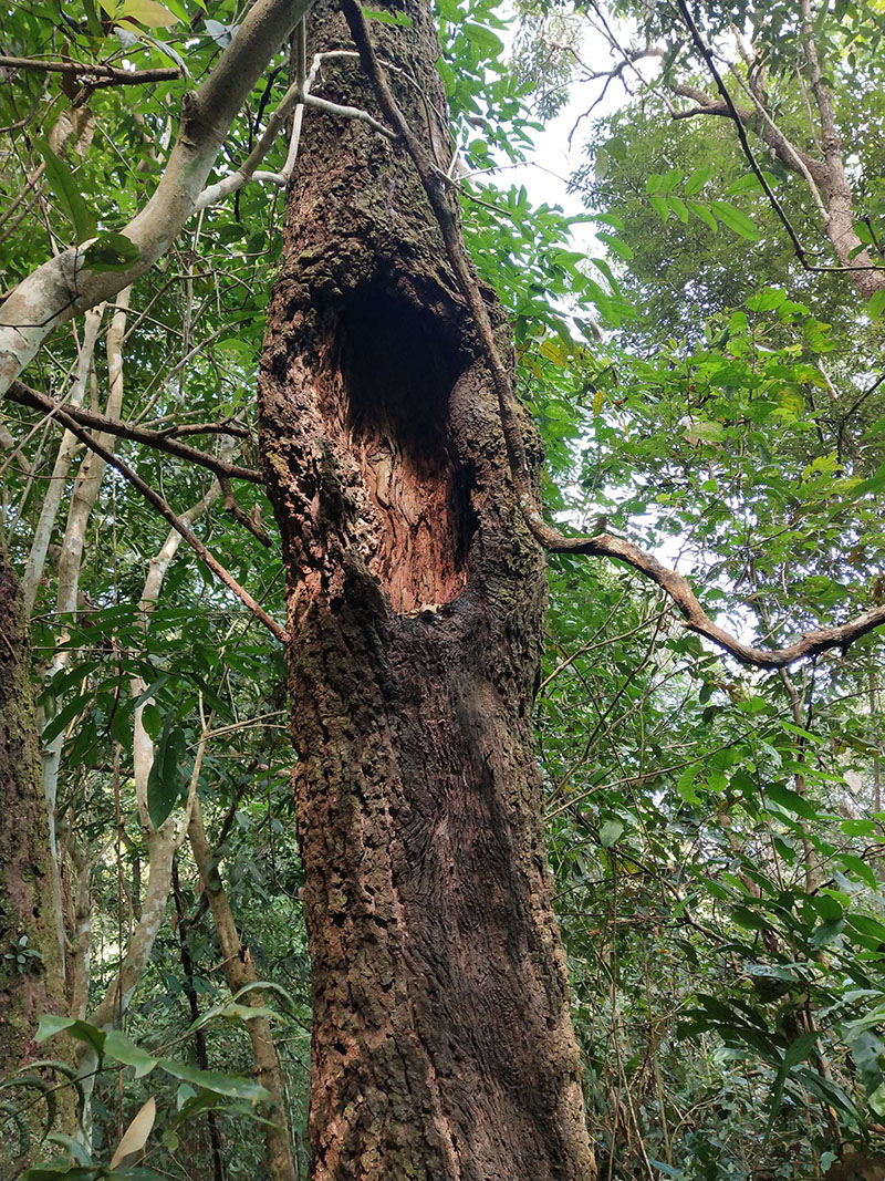 高大的野生奇南沉香。好奇心驅(qū)使我們想看看有沒有結(jié)香。