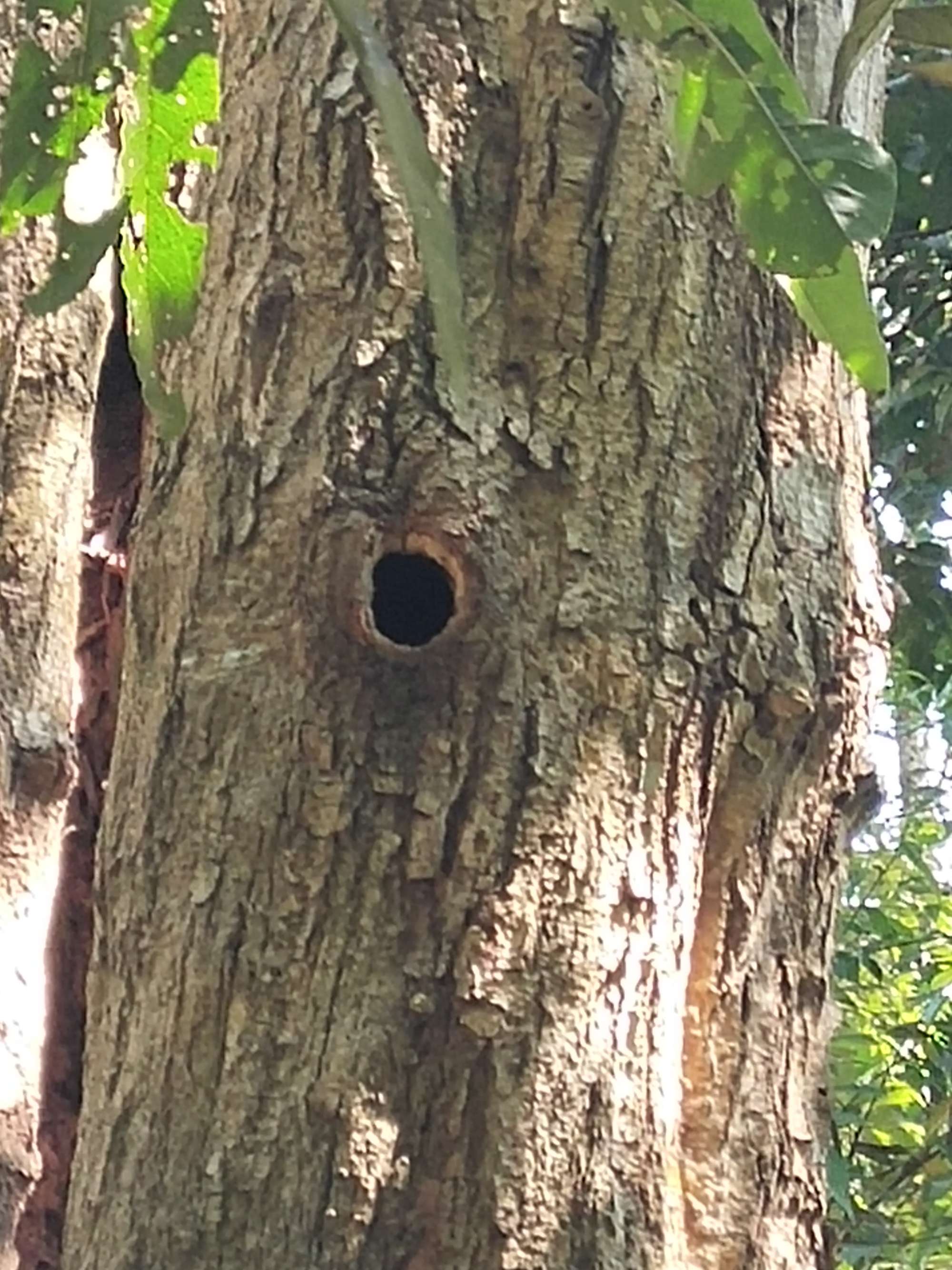 樹桿上被啄木鳥啄了個(gè)洞。