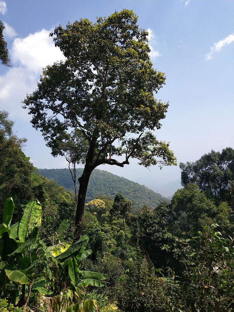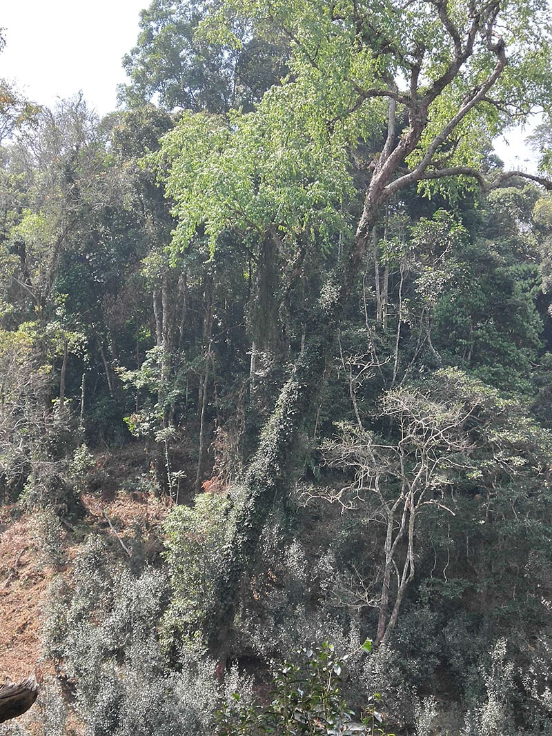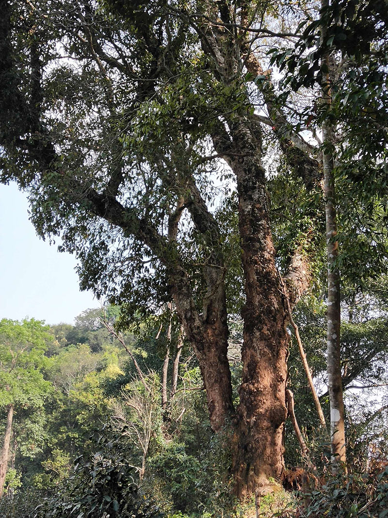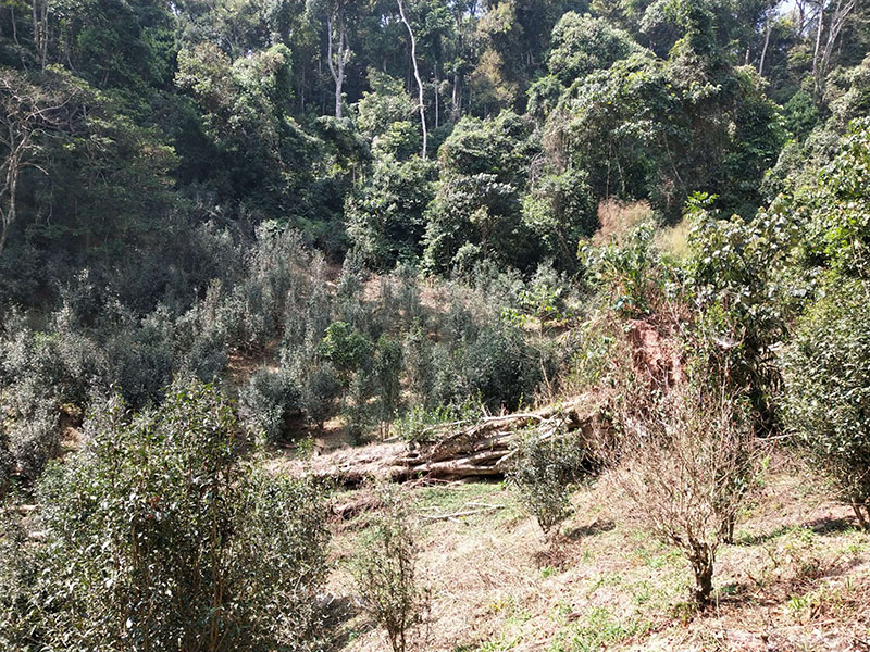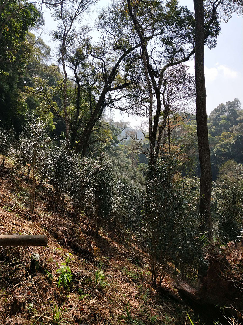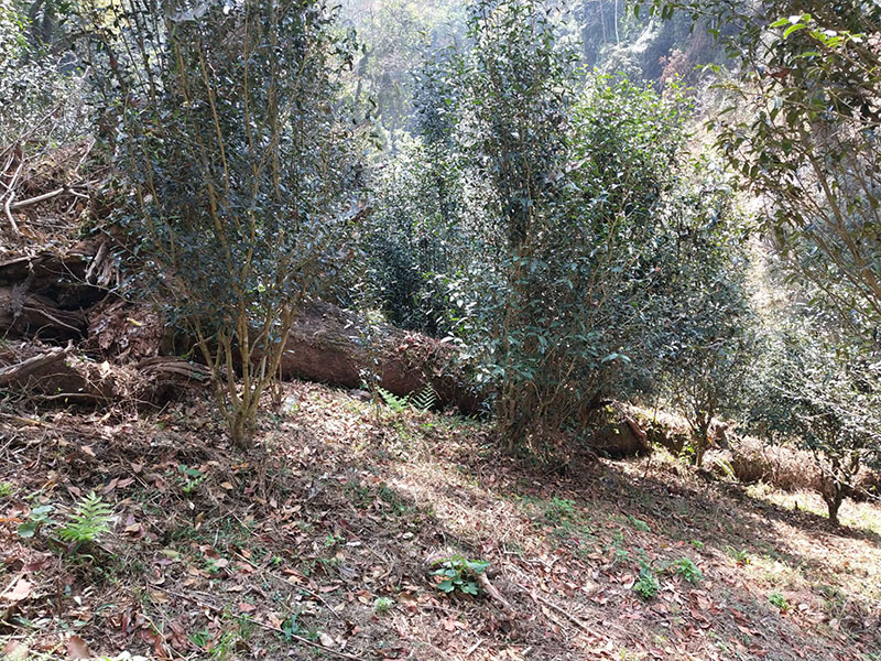 沿山坡往下繼續(xù)穿過森林,到達(dá)第二塊面積較小的古茶園。
