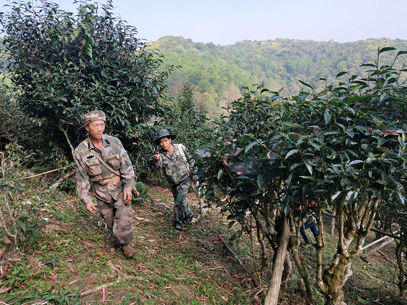 杰肖大哥和者澤在交流古茶園管理經(jīng)驗(yàn)。