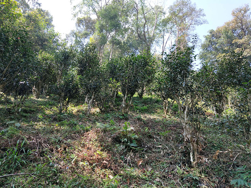 舊址西北蒼天的原始森林中,一望無際的古茶園區(qū),古老蒼勁的古茶樹訴說著滄桑變幻的歲月。古茶樹分布在溝壑兩旁。