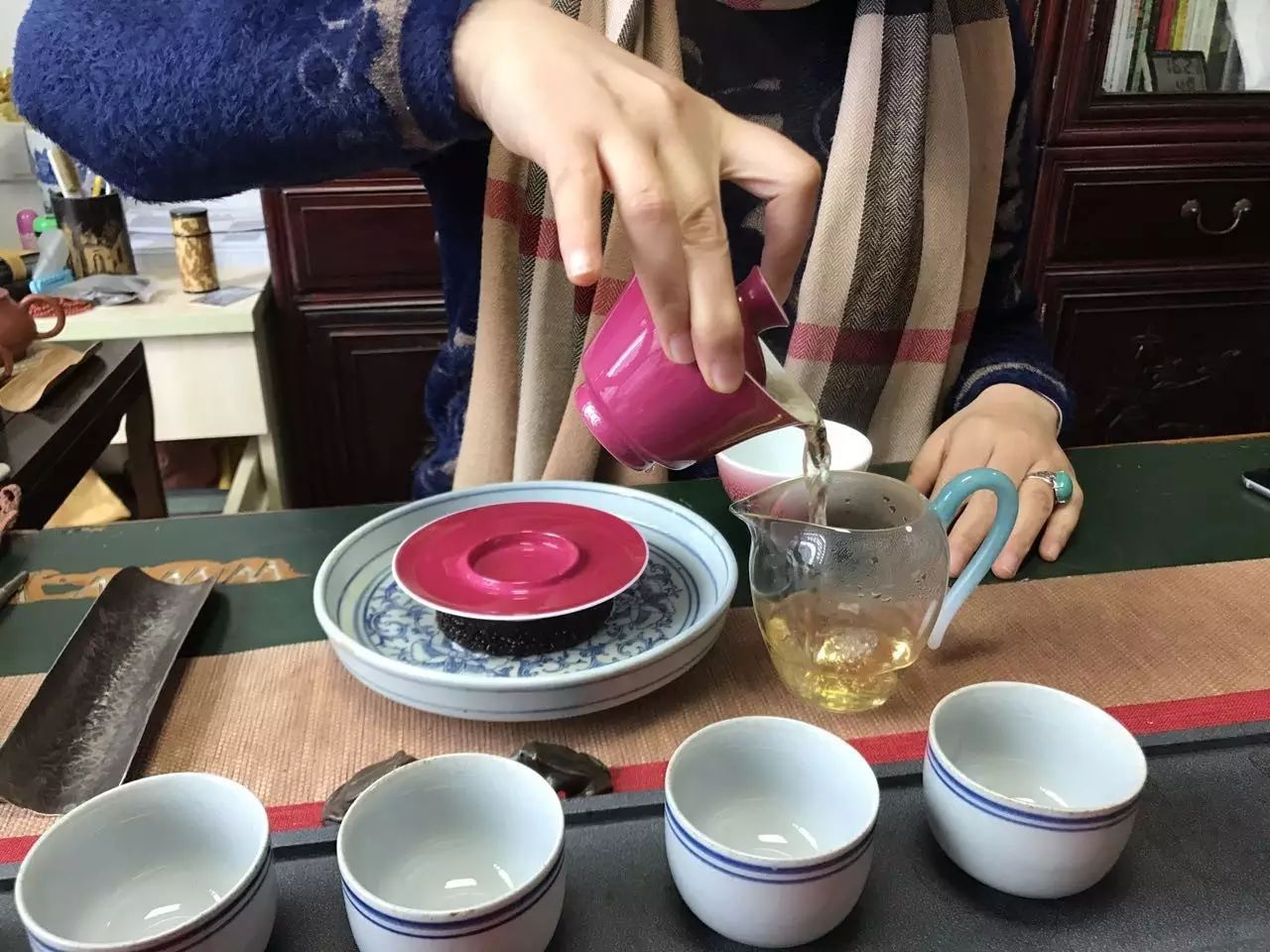 品飲普洱茶,重在尋香探色,先看茶湯的顏色,再品其味,前2道出湯后,公道杯倒完后,可以聞一下掛杯的香氣,還有品茗的杯底香氣。