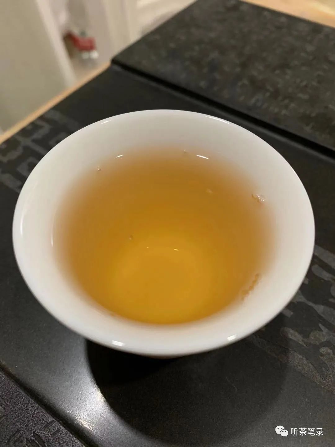 第五泡,湯色金黃透亮,在光線的加持下賞心悅目,茶湯入口依然是非常細(xì)膩順滑,香氣跟滋味都是蘊(yùn)含在茶湯里面的,進(jìn)入口腔散開的時(shí)候能感受到非常清晰的層次感,曼松的茶氣是內(nèi)斂的,不經(jīng)意間體感開始出現(xiàn),回甘生津綿密。