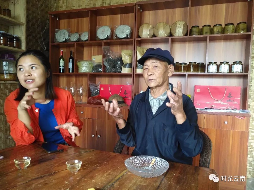 回到村子后,土妹找了一位長輩給我們介紹先鋒村的茶葉情況。他是當(dāng)?shù)氐哪觊L者,今年78歲,名叫推嘴(tui zui音譯,輕聲)。他介紹說,先鋒村記載是到第15代,最初是從南糯山遷移過來的,我們現(xiàn)在看到的古茶樹有一部分是自己的爺爺?shù)臓敔斈且淮头N下的,屬于人工栽培型古茶樹;也有一部分是森林里自然生長的。小時(shí)候,這里沒有茶商來收購茶葉,村民是用馬匹馱運(yùn)到緬甸,在忙拍(音譯)(距離景棟不遠(yuǎn))用先鋒的茶葉換對方的糧食、生活用品等,比如被子、鞋子。他特別強(qiáng)調(diào),以前緬甸那邊(應(yīng)指忙拍)有一種被子比較好,并且只有那里有;還有鞋子的質(zhì)量也好。