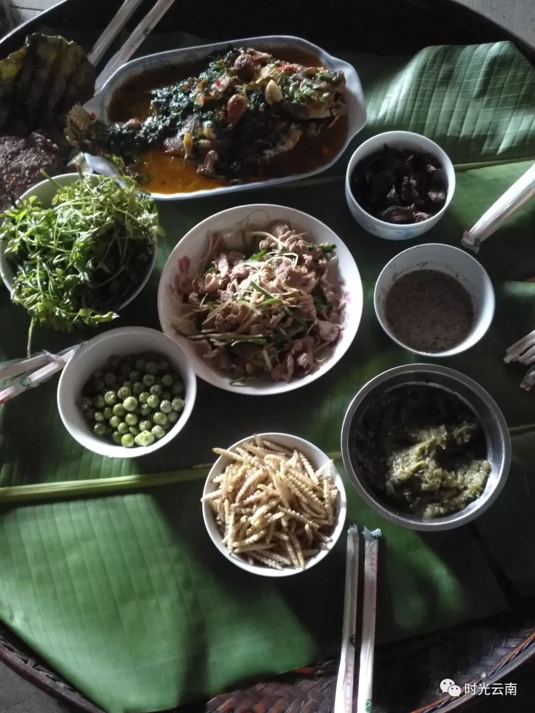曼加坡坎,人們習(xí)慣稱為先鋒村;曼加腳,人們習(xí)慣稱為紅旗村。而我們途經(jīng)另外一個(gè)茶區(qū)時(shí),又遇到一個(gè)大名就叫紅旗村的寨子,寨門就掛著毛偉人的頭像,多少可以感受到那個(gè)時(shí)代的烙印。所以在西雙版納追尋茶樹、茶葉,一定要搞清楚地名,否則可能會南轅北轍,就像西雙版納有兩個(gè)勐宋,一個(gè)是勐??h勐宋鄉(xiāng),人們習(xí)慣稱為“大勐宋”;另外一個(gè)就是景洪市勐龍鎮(zhèn)勐宋村委會,人們習(xí)慣稱為“小勐宋”;勐??h布朗山鄉(xiāng)有一個(gè)曼諾村(緊挨著邊境),勐宋鄉(xiāng)也有一個(gè)曼諾村;而在勐??h,“曼邁”這個(gè)名字則是用得最多的,有很多村寨都叫“曼邁”。但即使弄錯(cuò)了名字、走錯(cuò)了路線,也不用驚慌,因?yàn)闊o論哪個(gè)勐宋、哪個(gè)紅旗,無論哪個(gè)曼諾、哪個(gè)曼邁,都有茶樹,或多或少,都有茶園,或大或小——誤入,說不定比目標(biāo)明確的達(dá)到更驚喜。