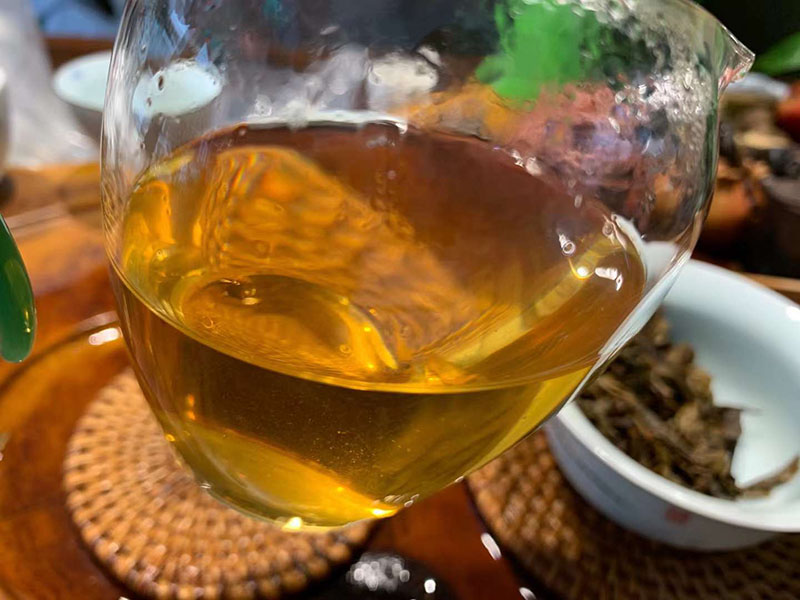 此茶入口澀在前,苦在上顎與舌尖,回甘好,從入口先澀后苦,然后開(kāi)始從舌尖化到喉嚨。有一種距離感,持久感。耐泡度也可以,茶湯略寡。