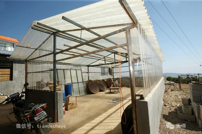 茶農(nóng)家專門用來曬茶葉的透明棚,既可以正常日照,又可防雨。