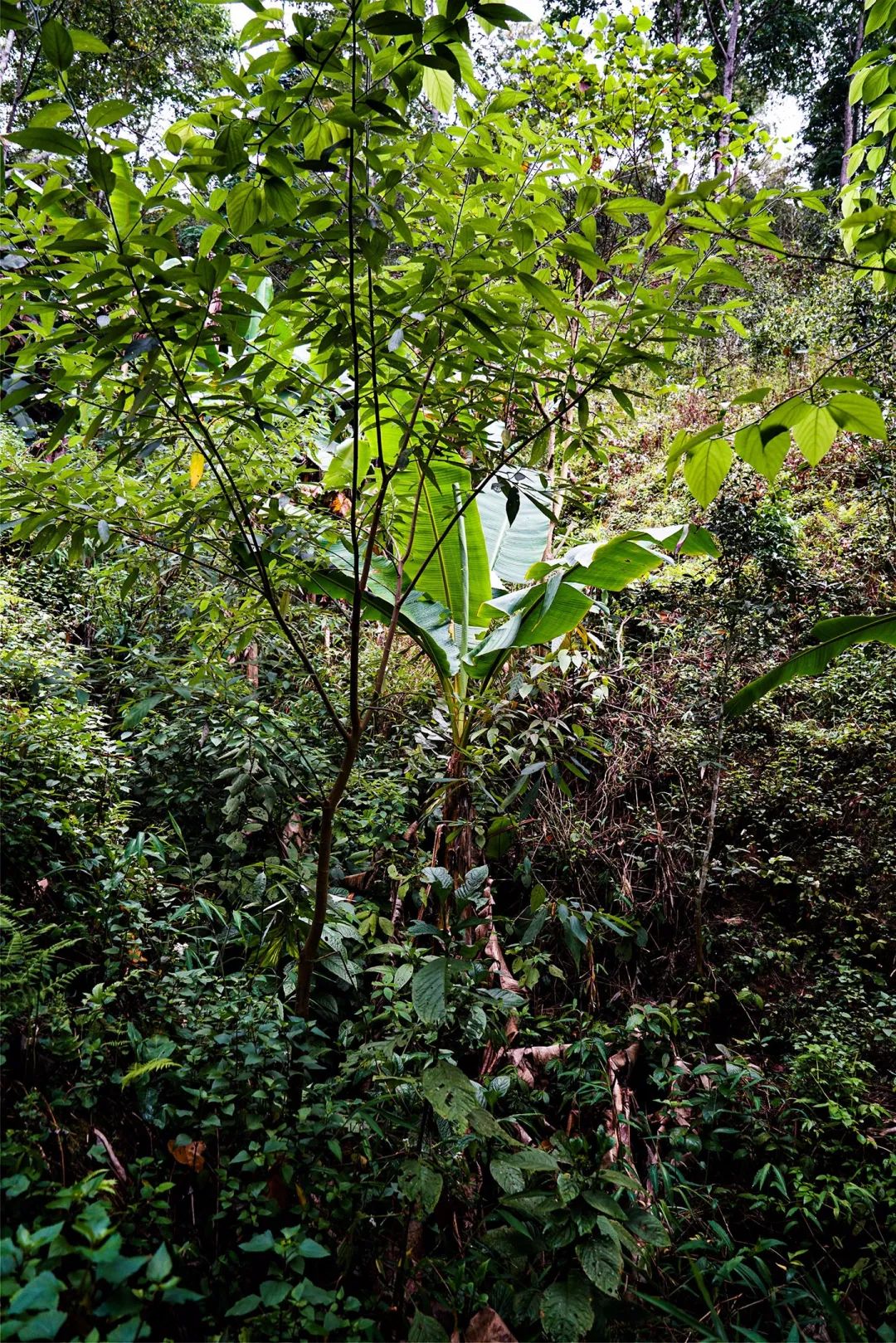 “箐”在少數(shù)民族語言里是溪流,小河的意思,之所以取名“龍門箐”,是到這個山頭,需要經(jīng)過逆流而上的小河,步行跋涉很長時間才能到達的森林地塊。沿著溪流而上,兩岸仍然是原始的生態(tài)體系,峭壁飛檐上皆是密密匝匝的樹林,古茶樹就在這山崖上生長。雖艱難跋涉林間,然各種花草樹木的香氣隨清風(fēng)徐徐吹來,頓令人神清氣爽,那種獨特的感受讓穿行其中的人難以忘懷。