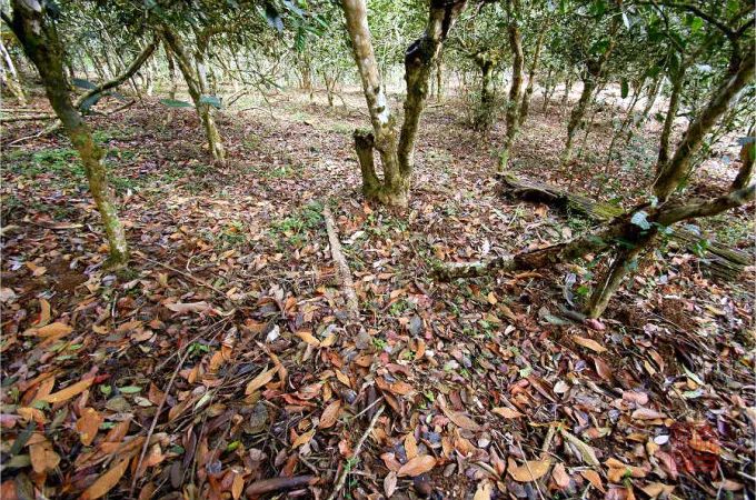 古樹現(xiàn)狀:革登茶山土壤為紅壤,茶樹為中小葉型,古茶園歷經(jīng)破壞,有少部分比較完整的古樹群落存留在密林中,近年來被清理出來,目前古樹群落已存留已經(jīng)不多,與莽枝茶山類似,近年來為了通過增加光照來增加產(chǎn)量,出現(xiàn)了破壞古茶林中大樹的情況。茶園的生態(tài)環(huán)境受到破壞,植被的覆蓋率下降很多,很多茶園的地被植物被連根鏟除,茶園水份保持率較低,造成古樹茶品質(zhì)有明顯下降。