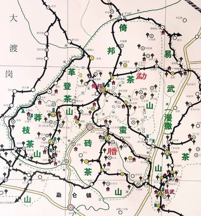清乾隆進(jìn)士檀萃《滇海虞衡志》載,“普洱名重于天下,出普洱所屬六山,一曰攸樂,二曰革登、三曰倚邦、四曰莽枝、五曰蠻磚、六曰曼撒,周八百里。”古六大茶山連成一片,西面是攸樂茶山,中間是革登、莽枝、倚邦、蠻磚茶山,東面是曼撒茶山(屬易武茶區(qū))。目前西雙版納古六大茶山是指瀾滄江內(nèi)六大茶山即革登、倚邦、莽枝、蠻磚、曼撒(易武)、攸樂(基諾)。