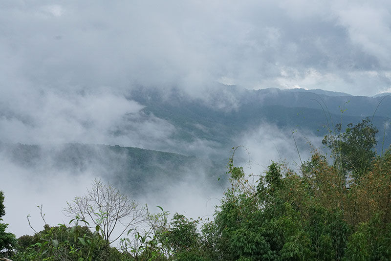 革登茶山1950米的山神廟是革登茶區(qū)境內(nèi)的海拔最高點,最低點則為磨者河與小黑江交匯處的565米處,其中著名的石梁子孔明山海拔1722米。如此懸殊的海拔差異,促成了革登茶山立體型的氣候奇觀。