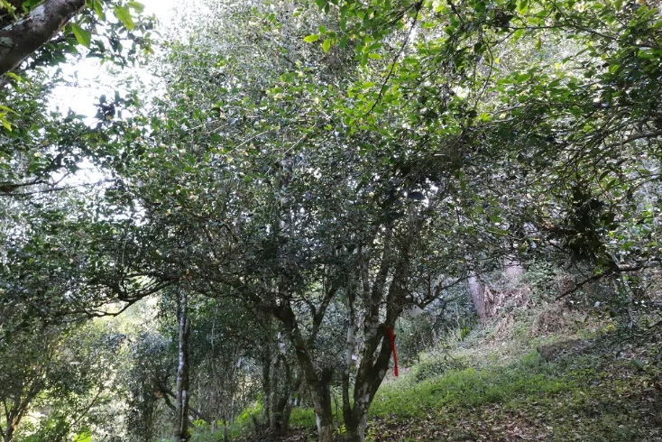 大黑樹林位于倚邦茶山境內(nèi),行政歸屬象明鄉(xiāng)倚邦村委會曼拱村二隊(duì),當(dāng)?shù)厝怂追Q“二鄉(xiāng)”。大黑樹林所在山頭,周邊海拔1900米左右,山溝間水箐自然流淌,生態(tài)環(huán)境非常優(yōu)越。此處伴生植物高大,植物蔥蘢,樹林成片, “大黑樹林”此名就由此而來。