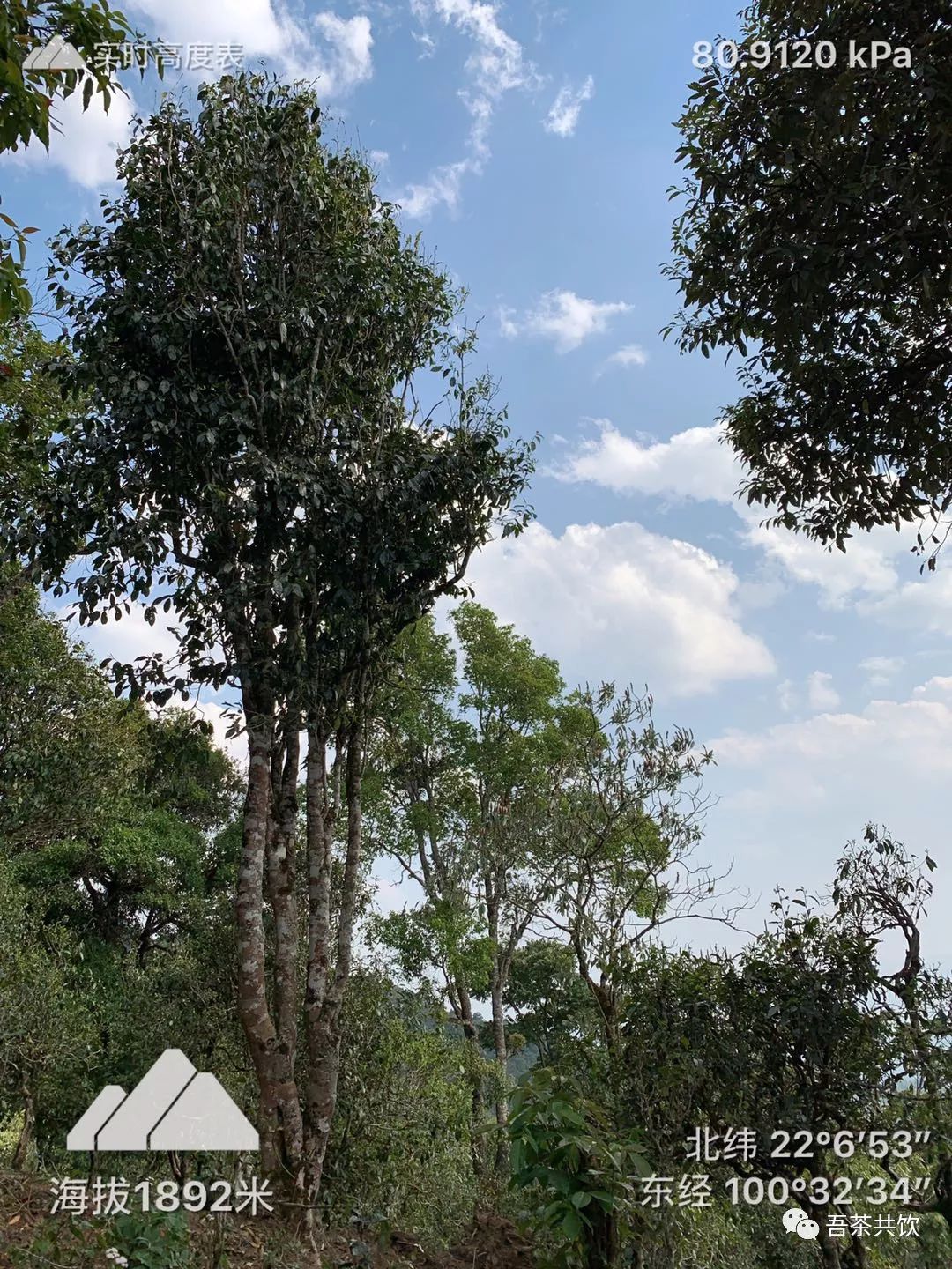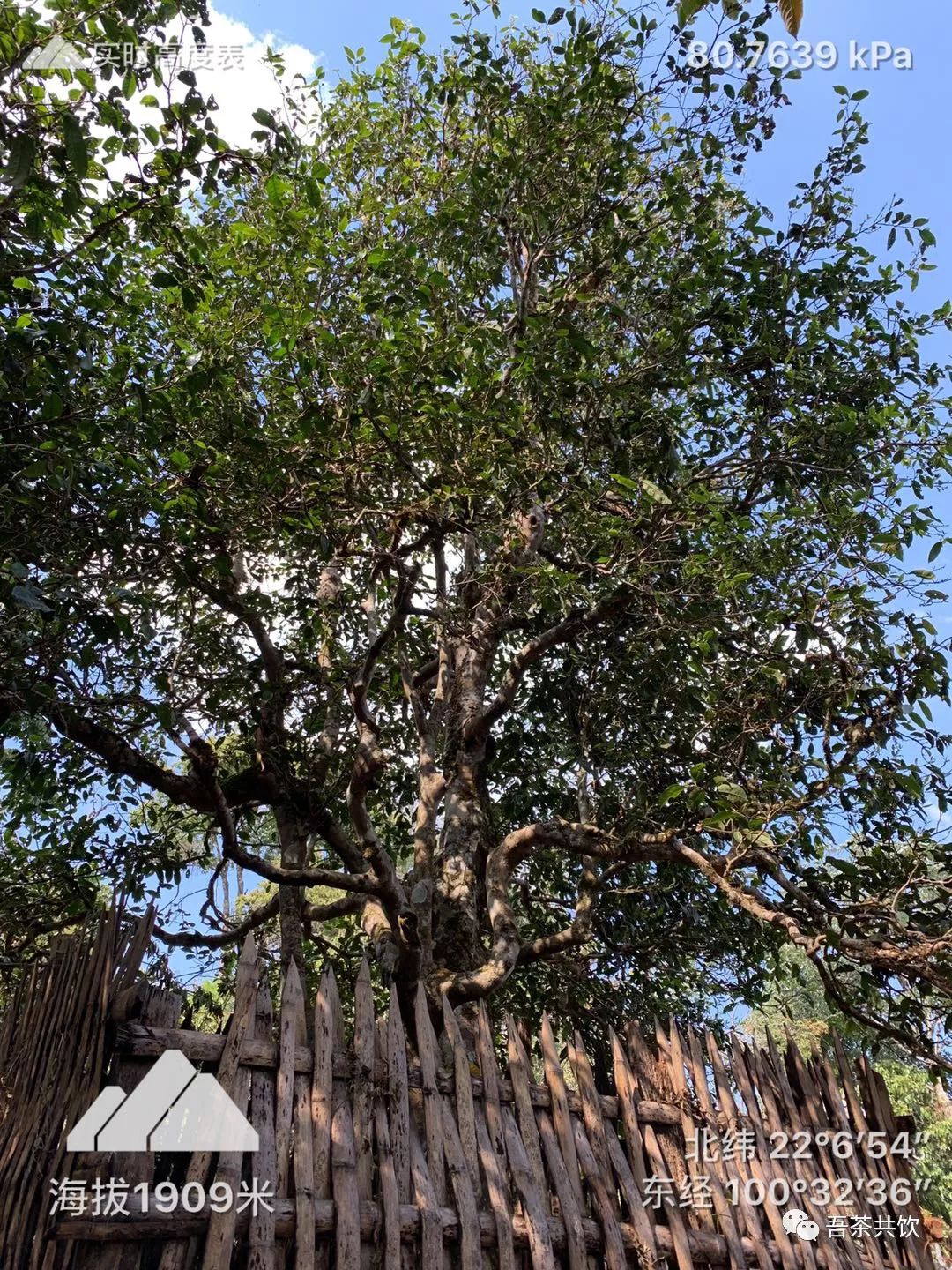 聽大頭哥介紹,這顆樹是野生品種,去年做了3公斤干茶。這顆樹的品種是厚軸茶。