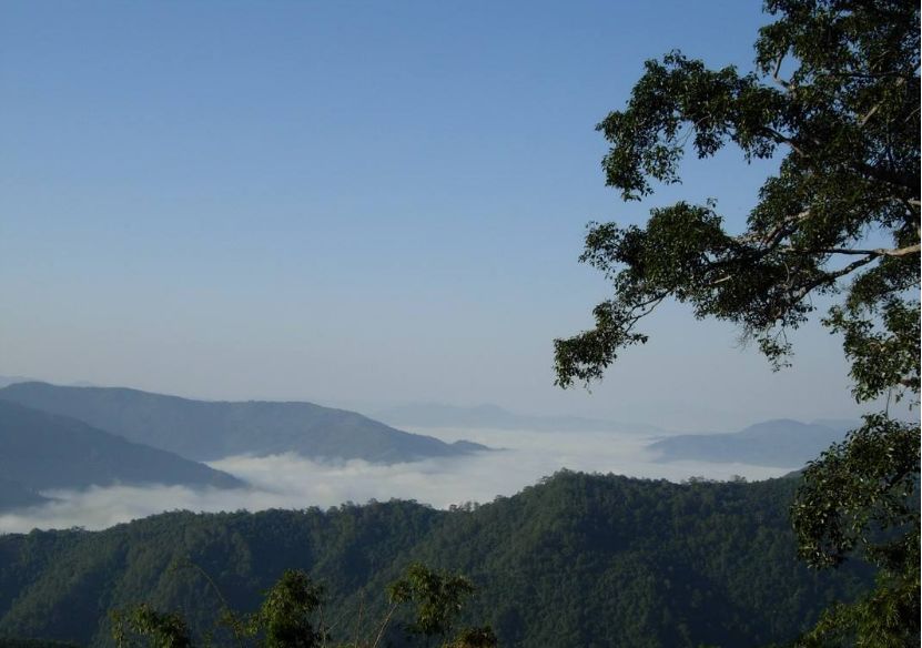 關(guān)雙西南方就是緬甸,距國(guó)境線的直線距離不到10公里。關(guān)雙古茶園距著名的景邁古茶山很近,隔著南覽河沖出的深箐向北看,可以清楚看到景邁山。關(guān)雙距景邁山的芒景村直線距離只有大約10公里,兩地沒(méi)有汽車路相連,兩寨布朗族要走親戚只有走山路或騎摩托車。