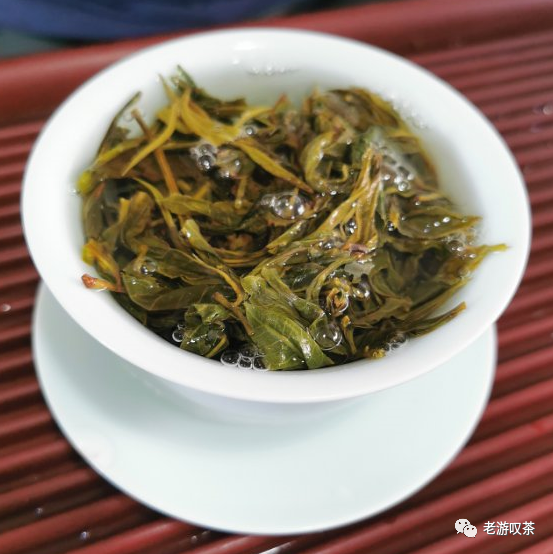 屬于豆香類,泡開(kāi)后的茶葉豆香明顯。掛杯的茶是蜜香,而且濃烈馥郁、持久,有點(diǎn)像濃烈的香水。不過(guò),這種茶香老游并不是很喜歡。上次老游和幾位女茶藝師品飲這款茶時(shí),她們對(duì)這款茶的香氣很是喜歡,這也許是女孩對(duì)香水天生的喜歡和敏感使然吧。