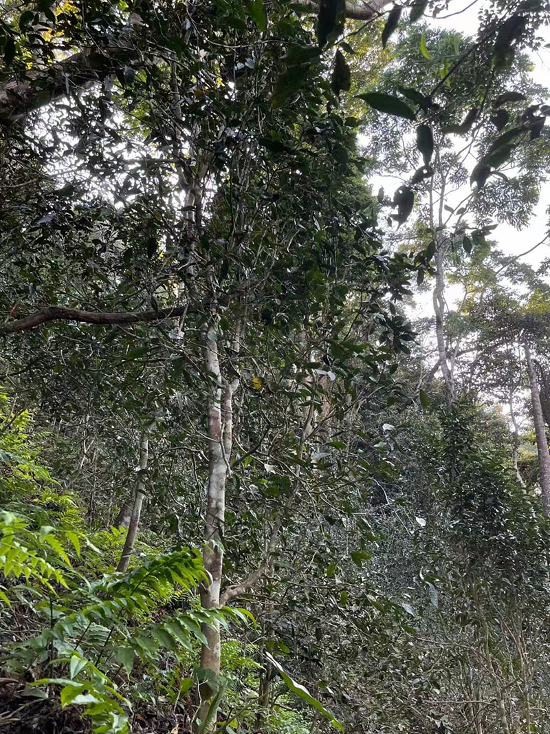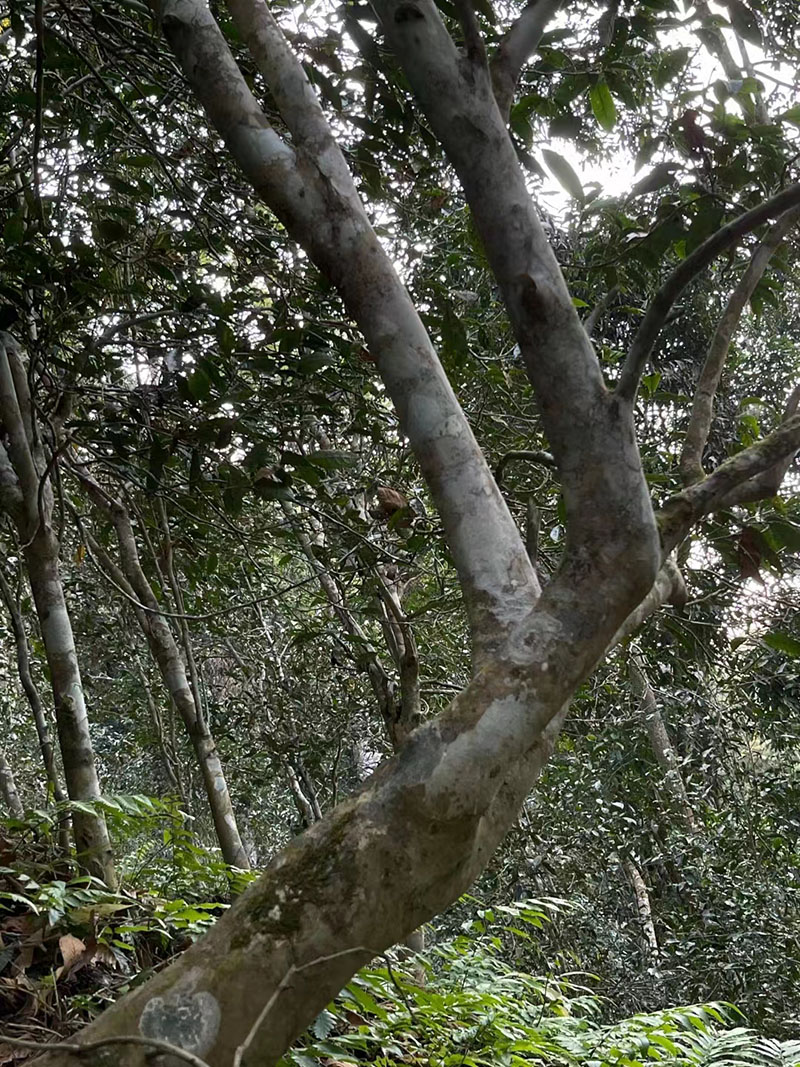 從小曼竜到桃子寨古茶園,都是連綿的山路,周邊生態(tài)環(huán)境非常好,高大的樹木聳入云間,野草瘋長,周圍鳥語花香。做為曾被遺棄多年的國有林,桃子寨古樹茶一直默默在原始森林野蠻生長,無人干涉,直到2002年之后才被茶農(nóng)發(fā)現(xiàn)管理。