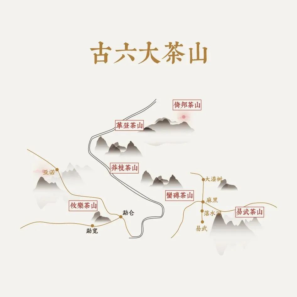 《滇海虞衡志》載: “普洱茶名重于天下,出普洱所屬六山:一曰攸樂,二曰革登,三曰倚邦,四曰莽枝,五曰蠻磚,六曰曼撒(今易武),周八百里。”