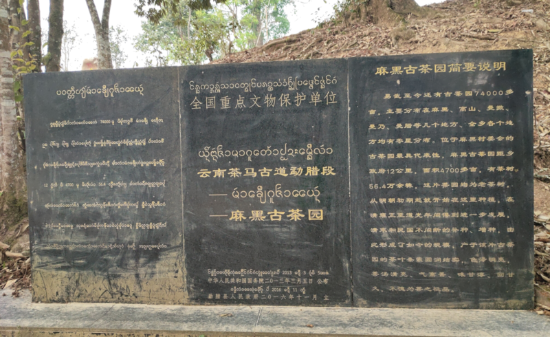 “麻黑,位于西雙版納州勐臘縣六大茶山的易武茶區(qū),地處易武鄉(xiāng)東北邊。麻黑是麻黑村委會所在地,屬易武六個村委會之一,管轄刮風寨、大漆樹、落水洞、曼秀、三丘田、荒田、鄭家梁子等村寨,麻黑位列七村八寨之首。麻黑古茶園的土壤全氮和堿解氮含量適中,交換性鎂含量較低,在麻黑茶葉口感的形成中扮演著重要角色。