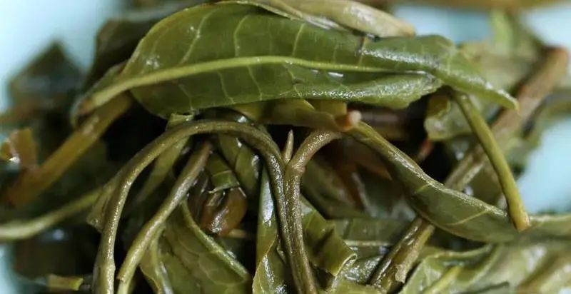 葉底上,麻黑茶的葉底肥長、鮮活、多茸毛,葉尖上有個長長的尾巴。