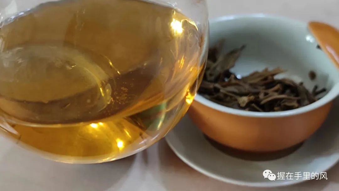 2水,出湯時(shí)間8秒,湯色黃亮,茶底蜜香。茶湯甘,略出苦味,生津快、持續(xù),回甘花香,口腔有回甜。