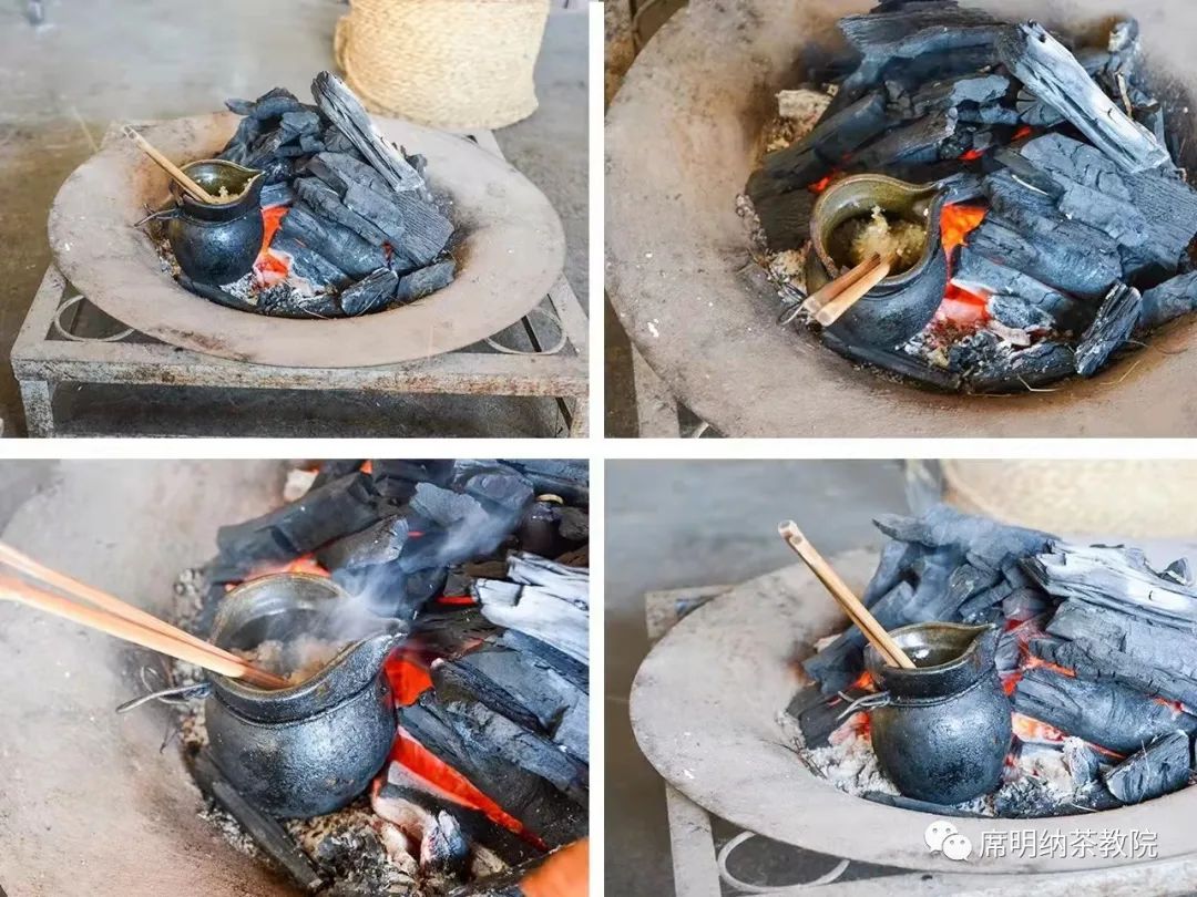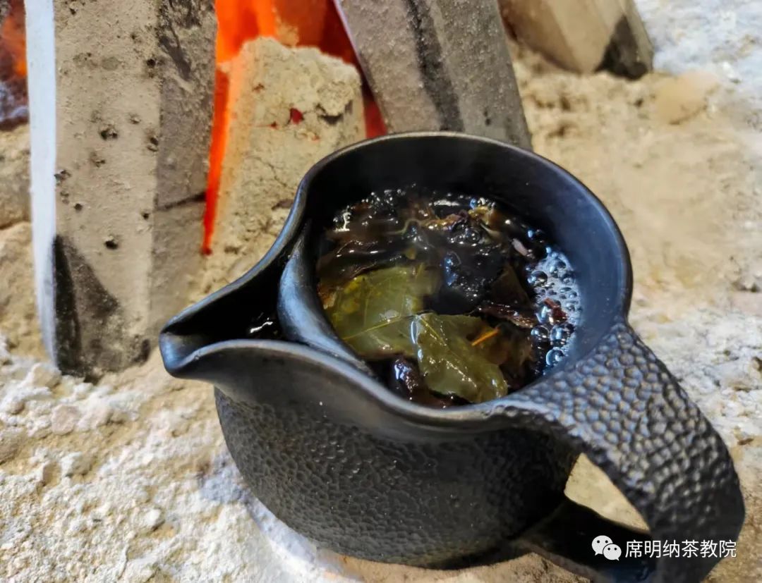 待泡沫散去后,再加入開水,濃郁的茶香味就會隨著蒸騰的熱氣迎面撲鼻而來。待茶水煮沸后就可以飲用,一杯烤清茶就完成了!