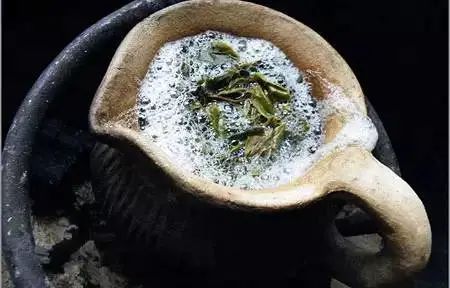 生一塘小火,放上特制的陶罐,慢慢將把陶罐烘熱,放入精選的茶葉,用文火慢慢煨烤,同時(shí)抖動(dòng)簸蕩,待茶葉烤至微黃色,飄逸出清幽的茶香時(shí),便沖入開(kāi)水。只聽(tīng)‘傭”的一聲,被沖起來(lái)的茶水泡沫會(huì)升至罐口,有如繡球花狀,客堂內(nèi)會(huì)立即飄逸出一股誘人的茶香。