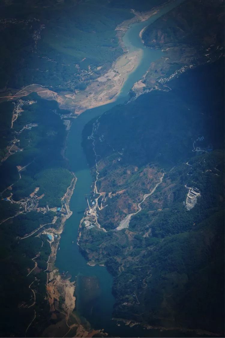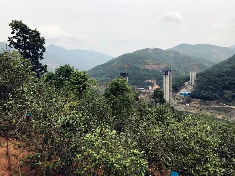 飛往臨滄的班機(jī)上鳥瞰昔歸茶山和建設(shè)中的瀾?江高速公路大橋