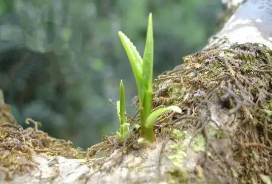 3、忙麓山的昔歸是自然生長的。5、6米的樹不鮮見,有的茶樹主干只剩下一截枯樁子,但老樹發(fā)新芽。而且新枝明顯更加粗壯(下圖),大樹的基圍在一米左右。這種茶園屬于傳統(tǒng)的采摘,自然生長。樹枝盤曲錯節(jié),經(jīng)歷百年而不經(jīng)人工干預(yù)形成的造型嶙峋古怪,似臥龍、似飛禽展翅,既易攀援采摘又有觀賞性,是典型的人工栽培古茶園。