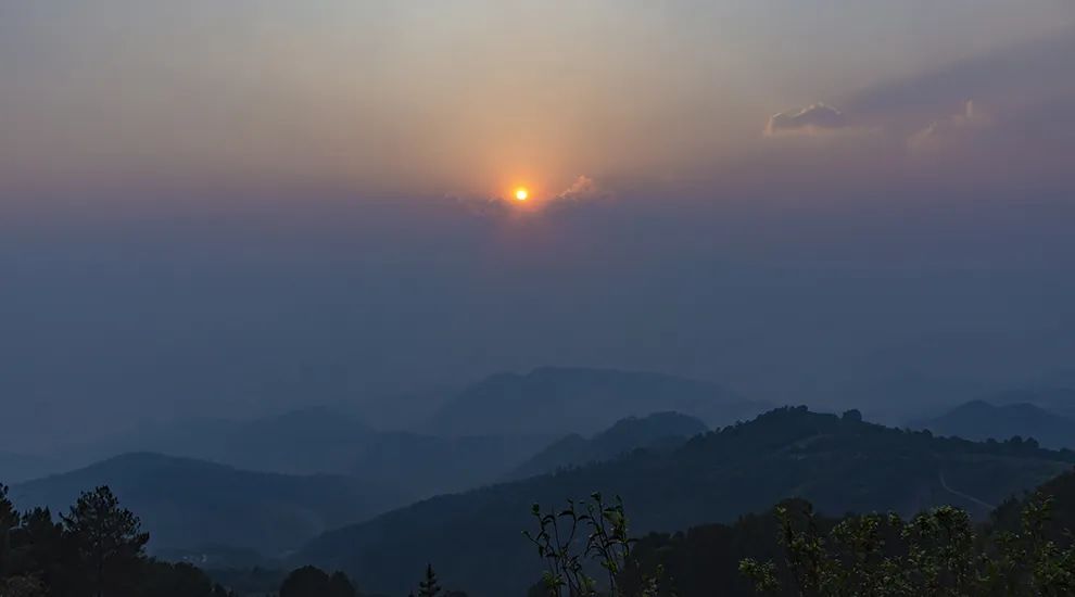 彼時天色已暮,太陽已經(jīng)西沉,橘黃色的夕陽光線鋪在周圍的群山上,幾只雞在路邊靜靜地站著,有幾個村民從路的盡頭慢慢悠悠的走過來。大山深處的傍晚,一切靜謐且安詳。