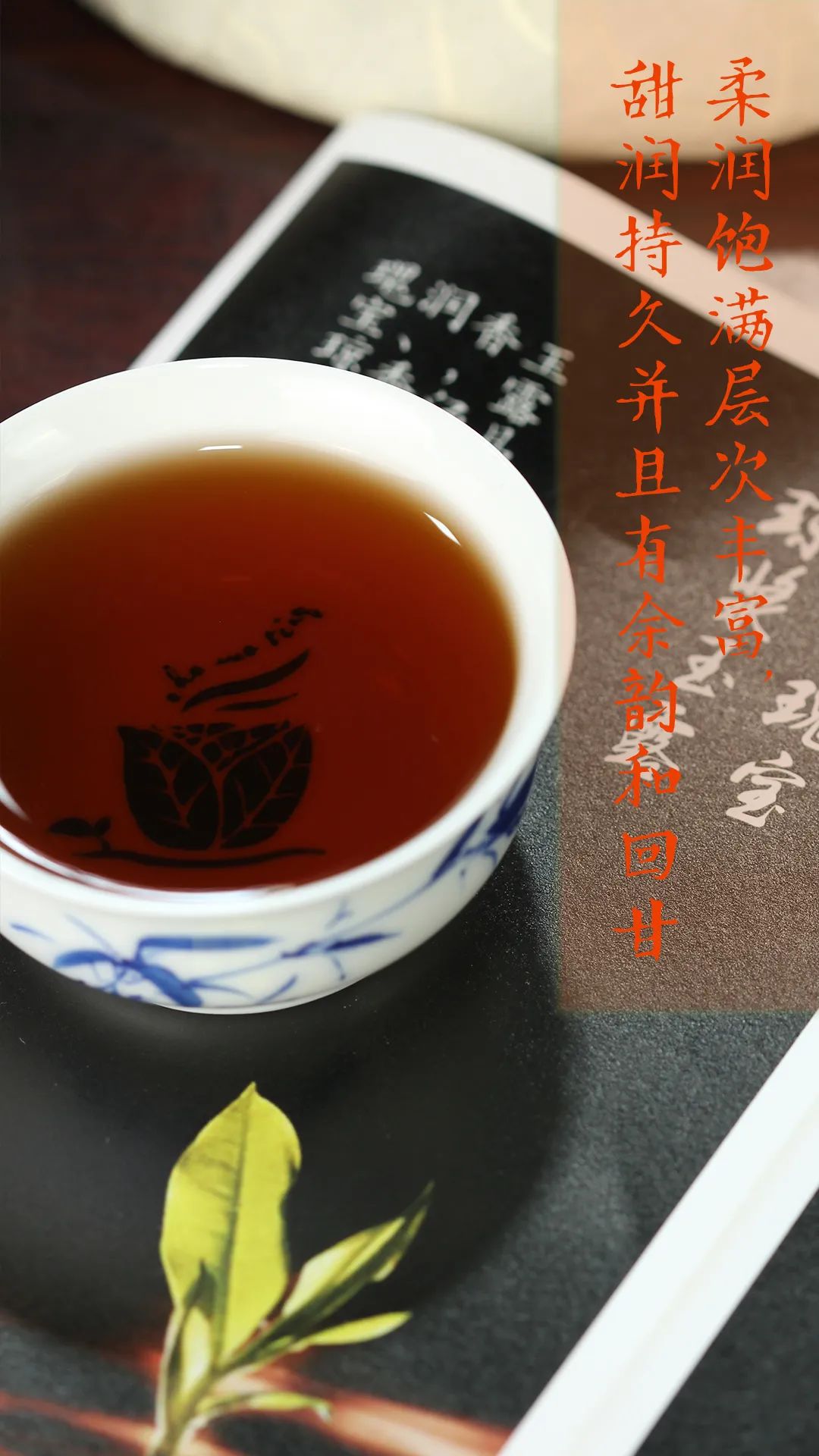在湯感上,易武產(chǎn)區(qū)的熟茶有果凍一般的膠質(zhì)感和木質(zhì)感,口感醇香柔順,茶湯口感表現(xiàn)厚實(shí)且細(xì)膩。