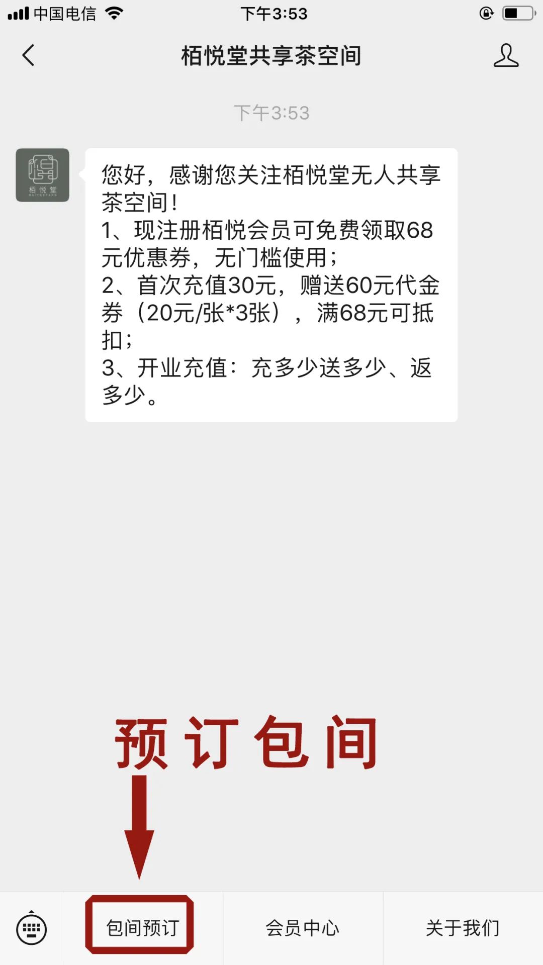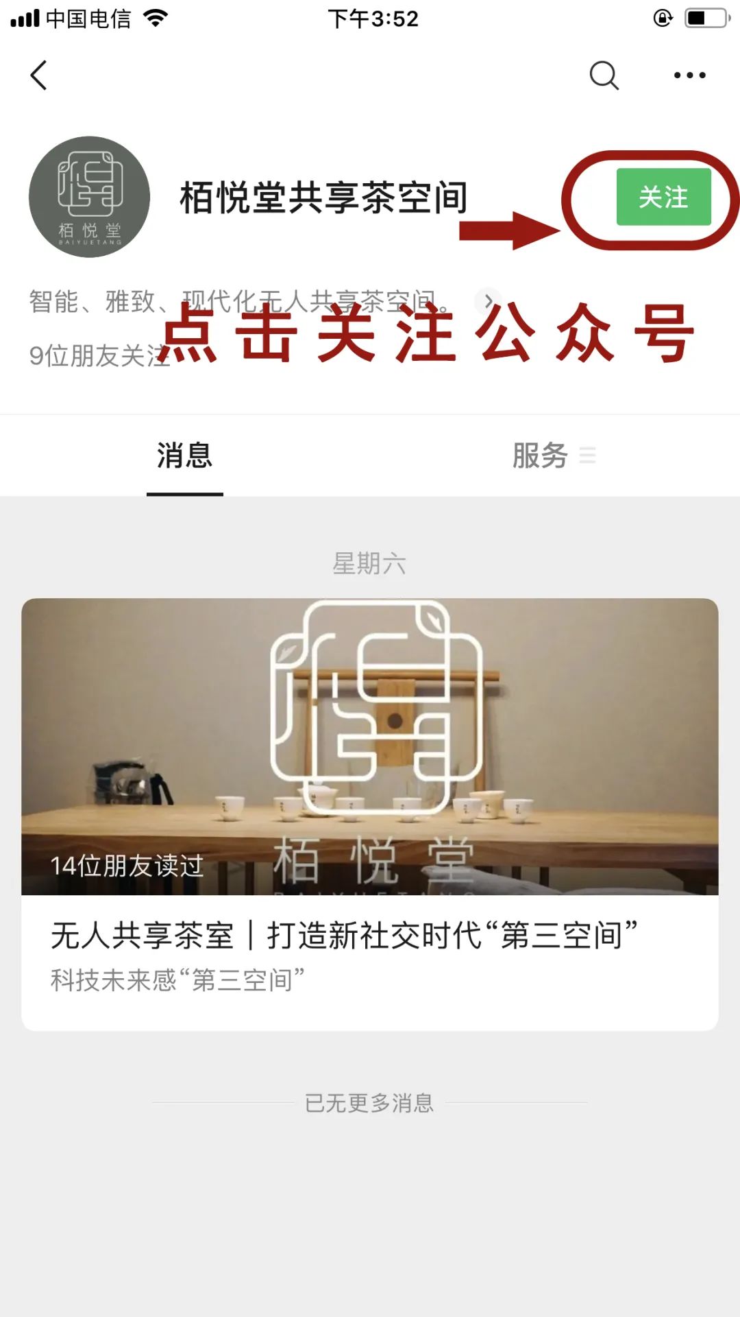 1、打開(kāi)微信,搜索“栢悅堂共享茶室”公眾號(hào)