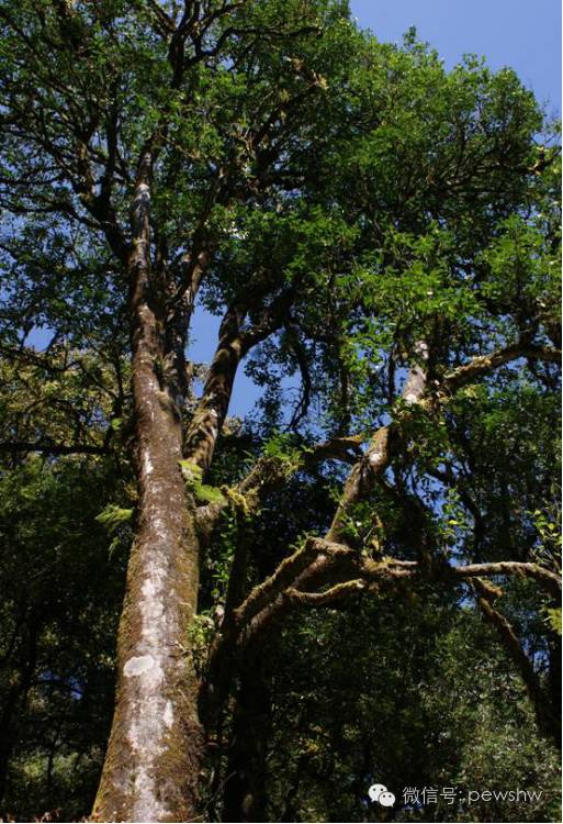 ??!第一眼看到它,我簡直不敢相信這是一棵茶樹。因?yàn)椋鳛槠斩?dāng)?shù)厝?,到過的茶園多了,見過的茶樹多了,景邁山栽培型古茶園也去看過,可從來沒有見過這么高大的古茶樹。這古茶樹高大粗壯、古老挺拔,樹干長滿苔蘚和寄生草,但卻枝繁葉茂、生機(jī)勃勃!它太高了,18.5米高,這是什么概念?形象地說,就是有城市里樓房的6層樓那么高,真是難以讓人相信!真為這奇特的茶樹王折服!