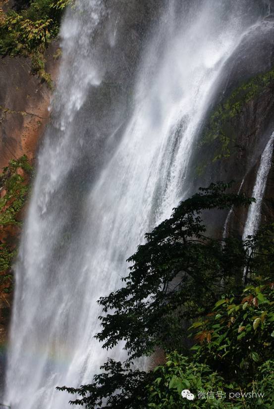 首先進(jìn)入我眼簾的是“吊水”,所謂“吊水”,其實(shí)就是人們說的瀑布。在離千家寨還有二十來公里路的時(shí)候,當(dāng)?shù)叵驅(qū)忠恢福糁钌畹纳襟溥b望,遠(yuǎn)遠(yuǎn)地就能看到對面山腰中一條飄落的白色玉帶,那就是千家寨瀑布。這讓人好感慨!山有多高,水有多高!這真是哀牢山千家寨一大奇觀!