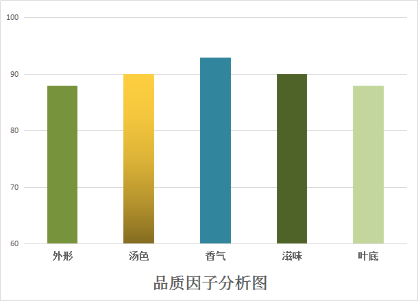 條索肥壯清晰,色澤墨綠油潤,略有茶梗