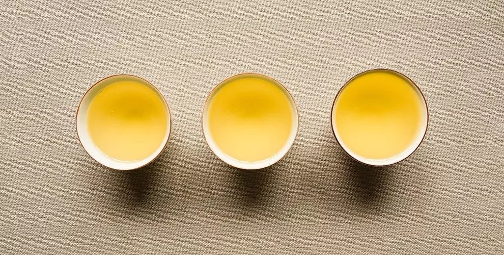 湯色淺黃明亮;花香帶甜、馥郁高揚(yáng);湯香十足,鮮爽柔潤,入口即化,舌底生津,回喉韻味清涼。