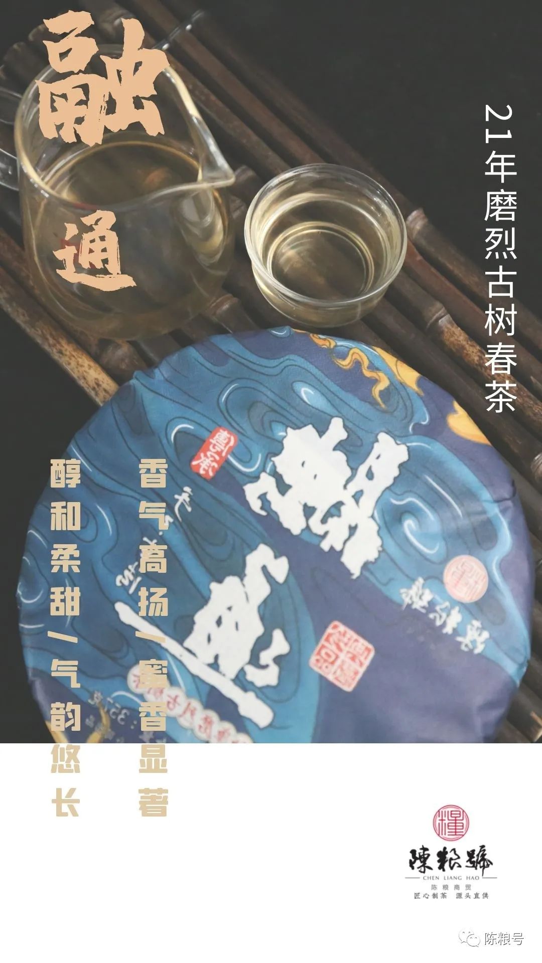融通,是2021年陳糧號(hào)勐庫茶區(qū)的優(yōu)秀作品之一,精采磨烈古茶園春茶上乘鮮葉,加持傳統(tǒng)古法凝心匠制,將磨烈茶“香氣高揚(yáng),蜜香顯著,醇和柔甜、氣韻悠長”的天賦個(gè)性,完美演繹。