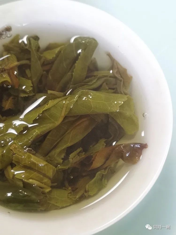 飲一口茶湯,滋味濃醇,爽快,入口飽滿,古樹韻足,回味生津明顯。