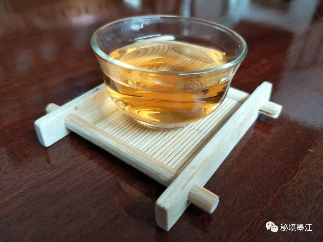 端起來(lái),香味好像更盛了,湯色清亮,抿了一口,帶一點(diǎn)點(diǎn)苦和清香。咽下去后回味甘醇,嗯,好像開始有些味道。
