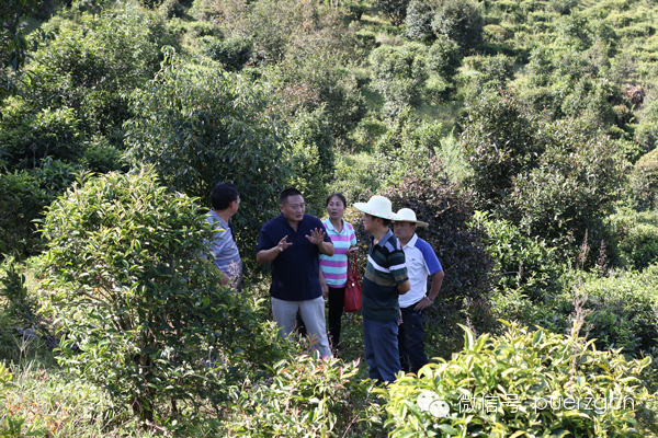 圖為:包科長與考察組在迷帝古茶園現(xiàn)場交流