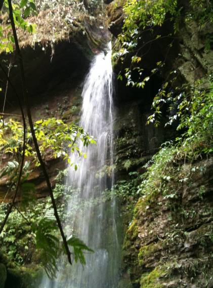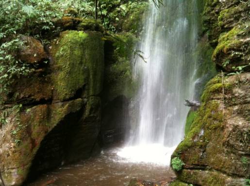 茶園旁的亮石崖瀑布噴水口 ( 包忠華攝)