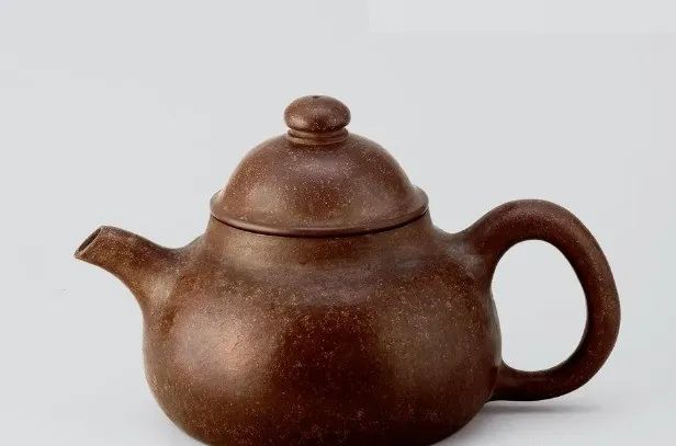 時(shí)大彬制調(diào)砂笠帽壺此調(diào)砂笠帽壺采用了傳統(tǒng)的調(diào)砂裝飾技法,將選用的細(xì)沙粒調(diào)和入泥料之中,令壺體表面“桂花砂”若隱若現(xiàn),如紛揚(yáng)的花瓣,加工配比已達(dá)到紫砂用料的高水平,調(diào)砂形成的肌理質(zhì)感與整體形制的協(xié)調(diào)也顯現(xiàn)出了制作技藝的高超。以笠帽形狀為蓋,蓋面高隆,以一橢圓形鈕置于蓋上,壺身較大,作球狀,自腹部向下收斂至足底,向上收斂至肩??傮w造型簡(jiǎn)練渾樸,寓剛強(qiáng)于巧麗之中,具有明代器皿造型簡(jiǎn)樸大度的氣勢(shì)。“笠帽壺”另一大特點(diǎn)在于壺流的處理,作品的壺流很高,長(zhǎng)直流的設(shè)計(jì)可以讓壺的整體有一種鶴立雞群的視覺效果,同傳統(tǒng)紫砂壺形體的制作理念有所不同,因?yàn)檫^長(zhǎng)的壺流會(huì)間接的影響出水,在實(shí)際應(yīng)用中并不是一個(gè)非常好的選擇。為了解決這一問題,壺身上的出水口設(shè)置的較低,且流身較出水口更細(xì),這樣一來也就增加了壺流內(nèi)部的壓力,出水也就變得順暢了,同時(shí)壺口部分的處理也相應(yīng)作出變化。不過這種變化在外部輪廓上并不明顯,因?yàn)閴厣w的蓋沿制作形成了一種“藏口”的視覺效果,蓋上壺蓋以后,口蓋合一隱藏了壺口的線條,這樣通過壺蓋線條的掩蓋,實(shí)際的壺口要比看上去高出很多,也就是說從結(jié)構(gòu)上看,長(zhǎng)直流并沒有與壺口的高度沖突,相反通過巧妙的視覺輪廓變化,形成了作品自身的輪廓特點(diǎn)。