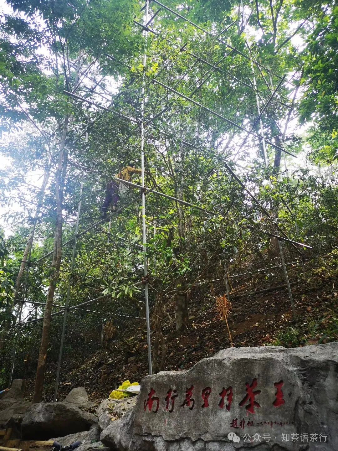 這顆南糯山茶王樹最為人所熟知的歷史,莫過于“1990年12月,全國政協(xié)副主席、全國佛教協(xié)會(huì)會(huì)長趙樸初親臨南糯山參拜“茶王樹”后,在云南省農(nóng)業(yè)科學(xué)院茶葉研究所欣然揮毫,留下了“南行萬里拜茶王”的珍跡。”