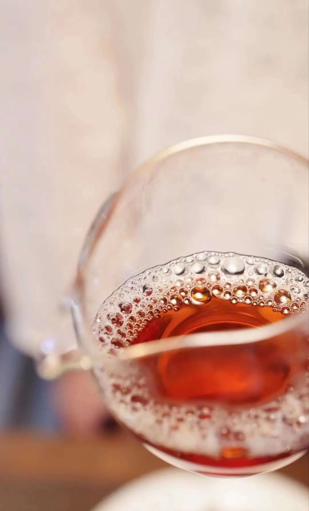 前四泡的出湯時(shí)間控制在5秒左右,傾斜公道杯,讓茶湯沿著公道杯邊緣慢慢流下去。
