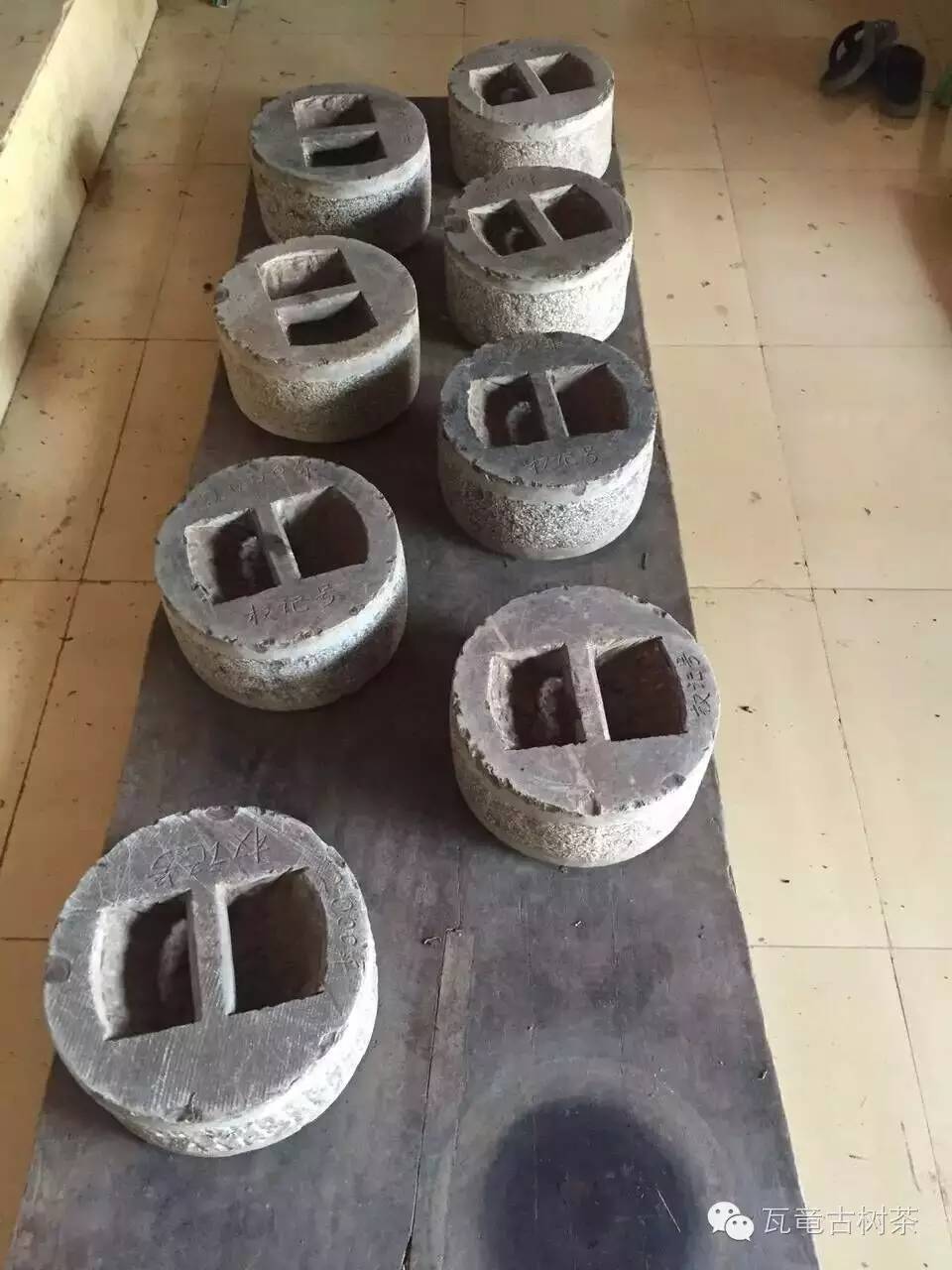 七、蒸壓:把曬干的茶葉用蒸汽蒸濕,放在不同模具里壓成形。