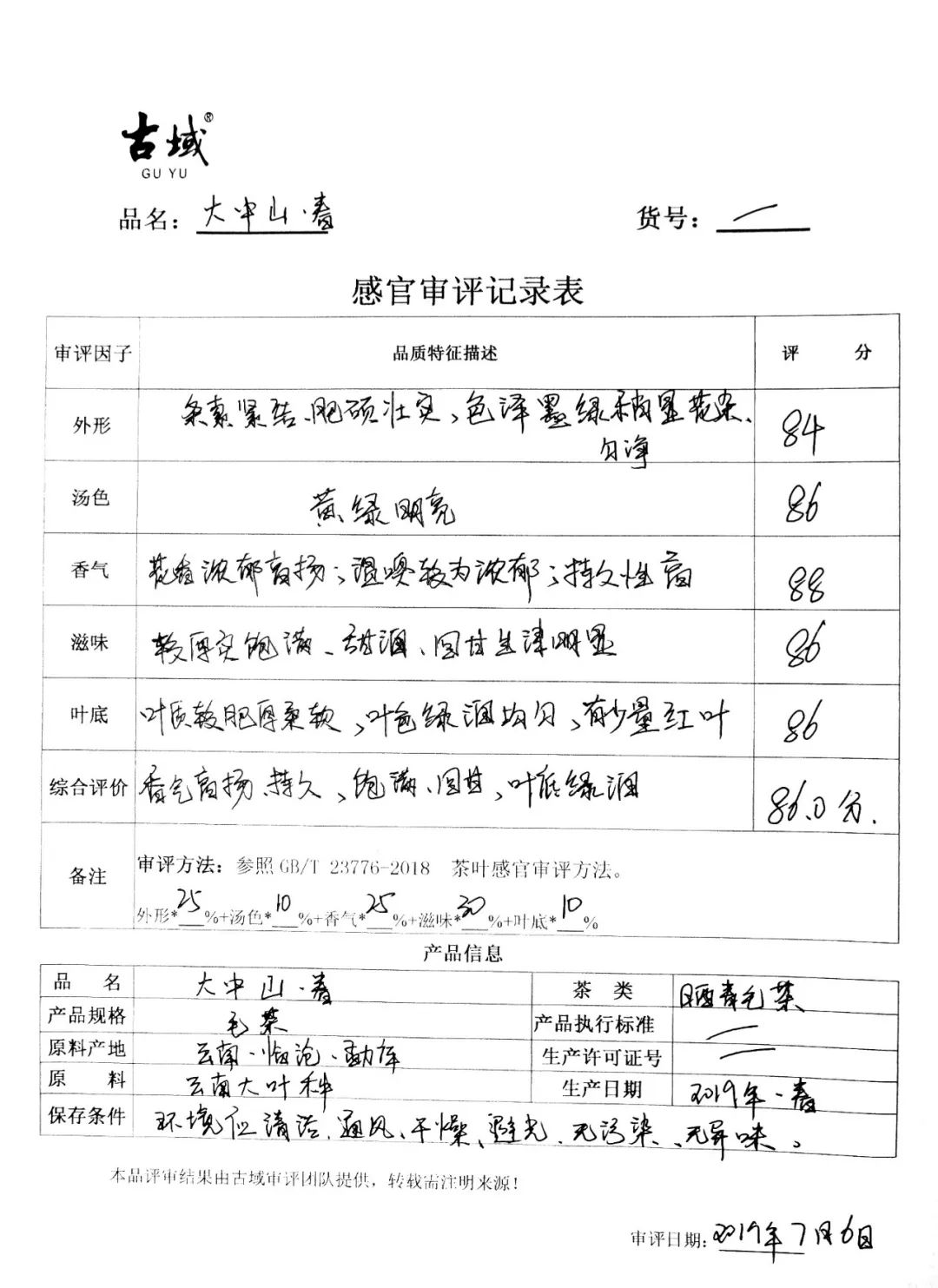 大忠山春茶毛料審測,口感濃郁花香與甜潤口感相得益彰