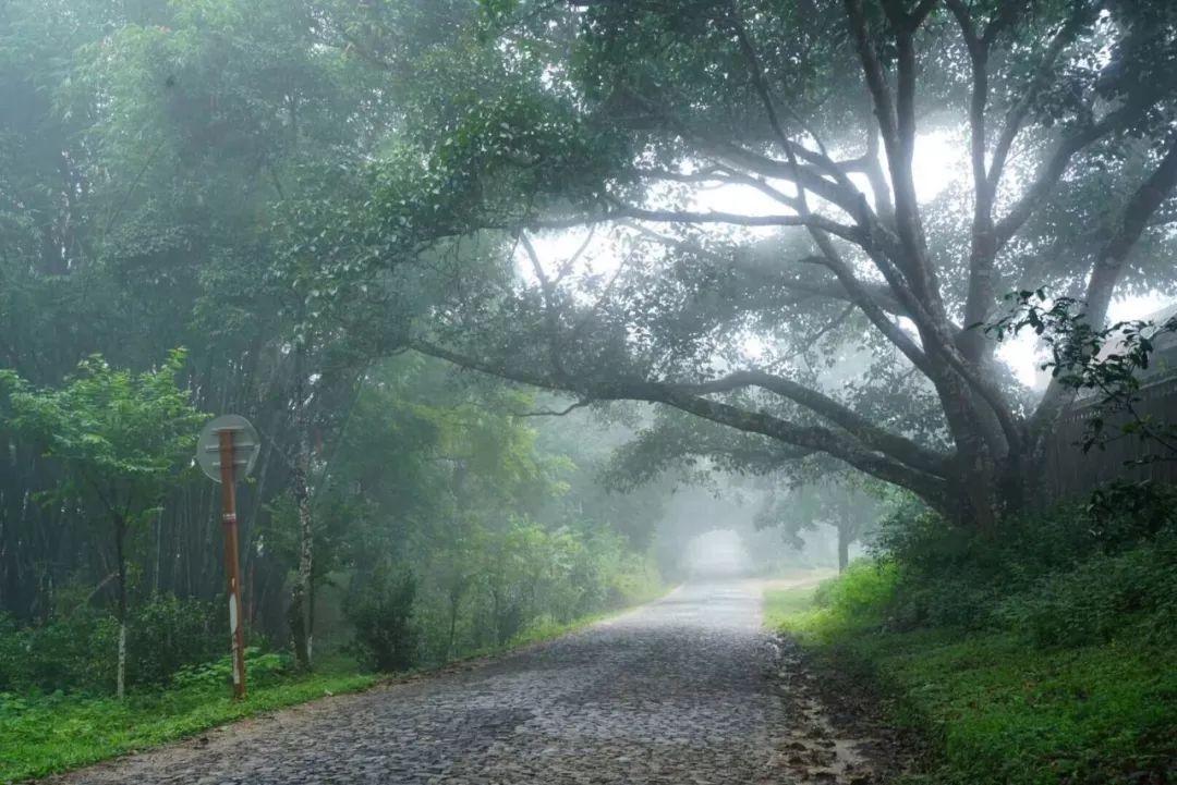因為剛下過雨,一進(jìn)山上,就好像到了仙境。整座山一直在“吞云吐霧”,遠(yuǎn)遠(yuǎn)看得見白云飛舞著,漸漸吞沒了幾個小村落。