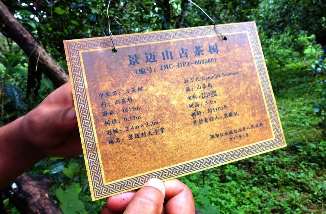 高高大大的茶樹,很多都掛著牌子,寫著由政府鑒定的生長年限,七八百年的都算是“年輕”的,隨便找?guī)卓?,都是一千年以上?/p>