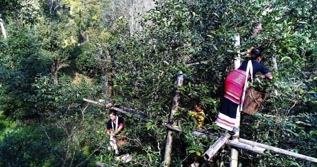 和普通的灌木叢茶樹不同,這里的古茶樹,都是高大的喬木,她要采茶,需要爬到樹上。